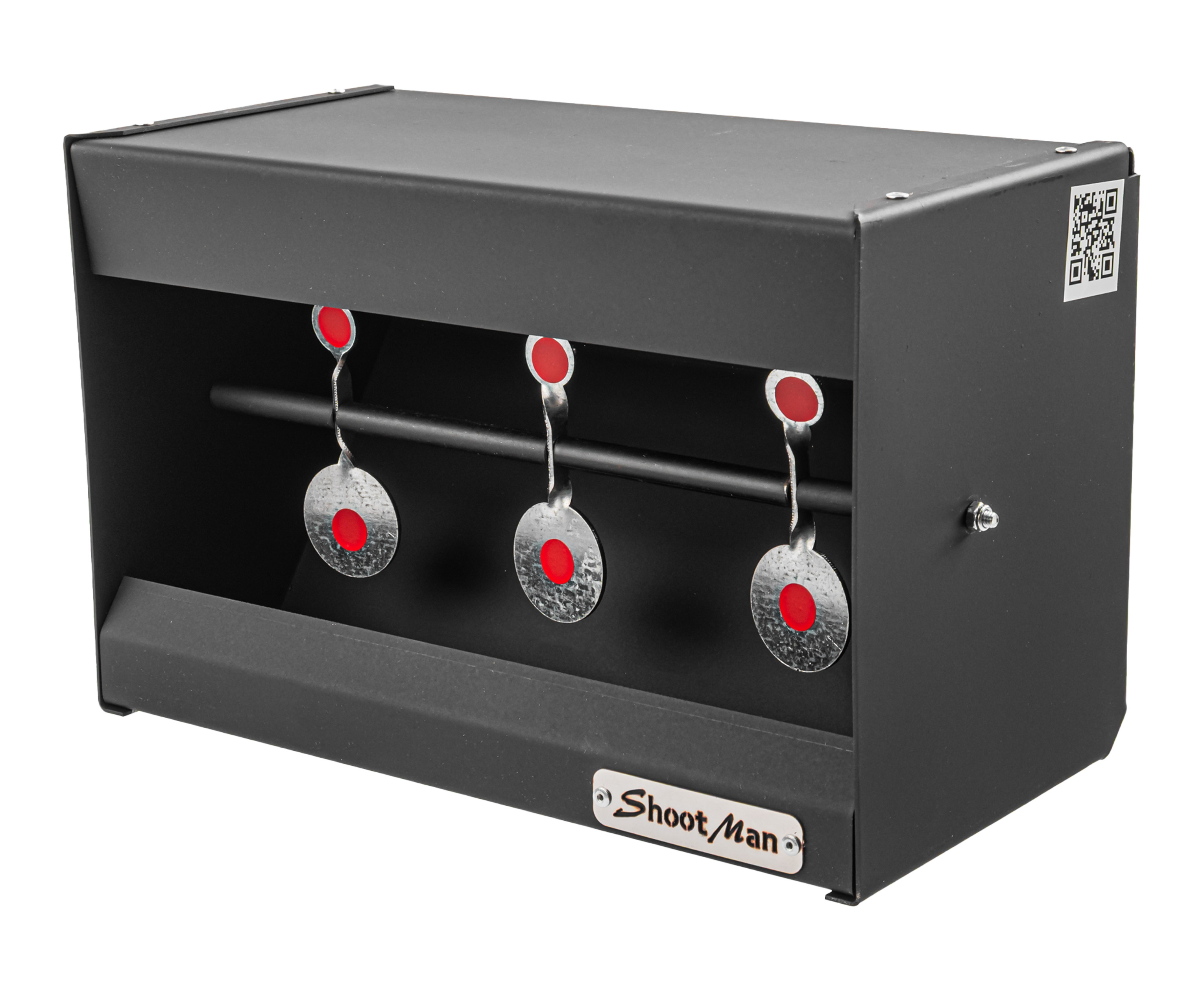 Конструкцию выполнили целиком из металла - поверхности корпуса окрасили в графитовый цвет. Толщина мишеней - до 1.5 мм, что допускает использование страйкбольных пластиковых шариков и легких свинцовых пулек в калибре 4.5 мм.