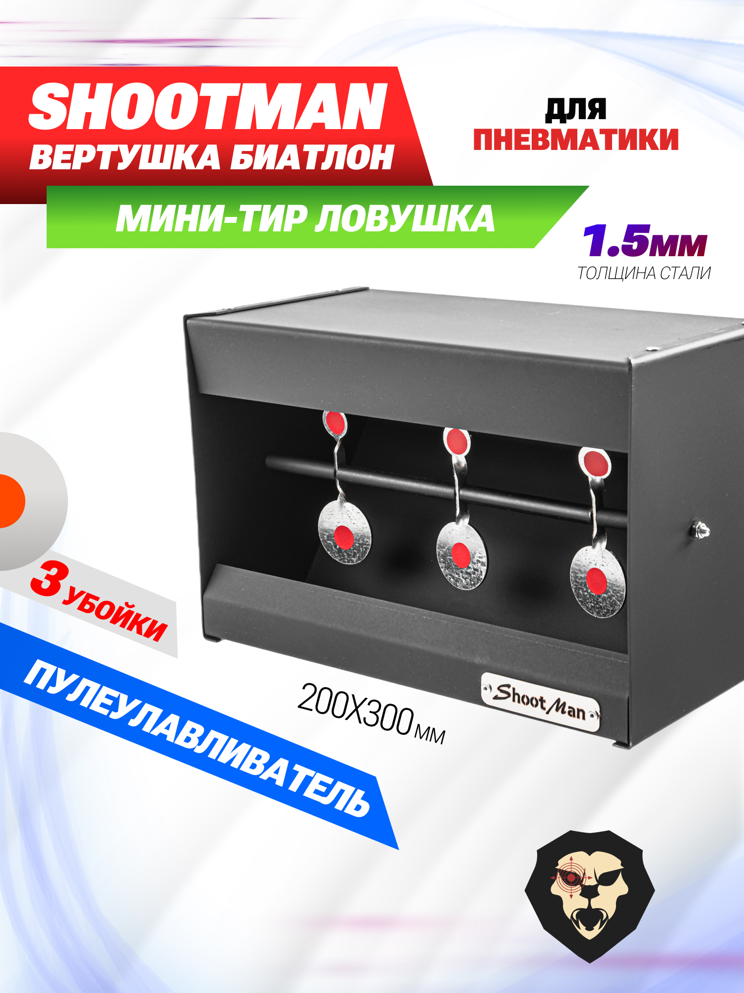 Минитир ловушка Shootman Вертушка Биатлон (для пуль, 200х300 мм, 1.5 мм) купить в интернет-магазине Popadiv10.