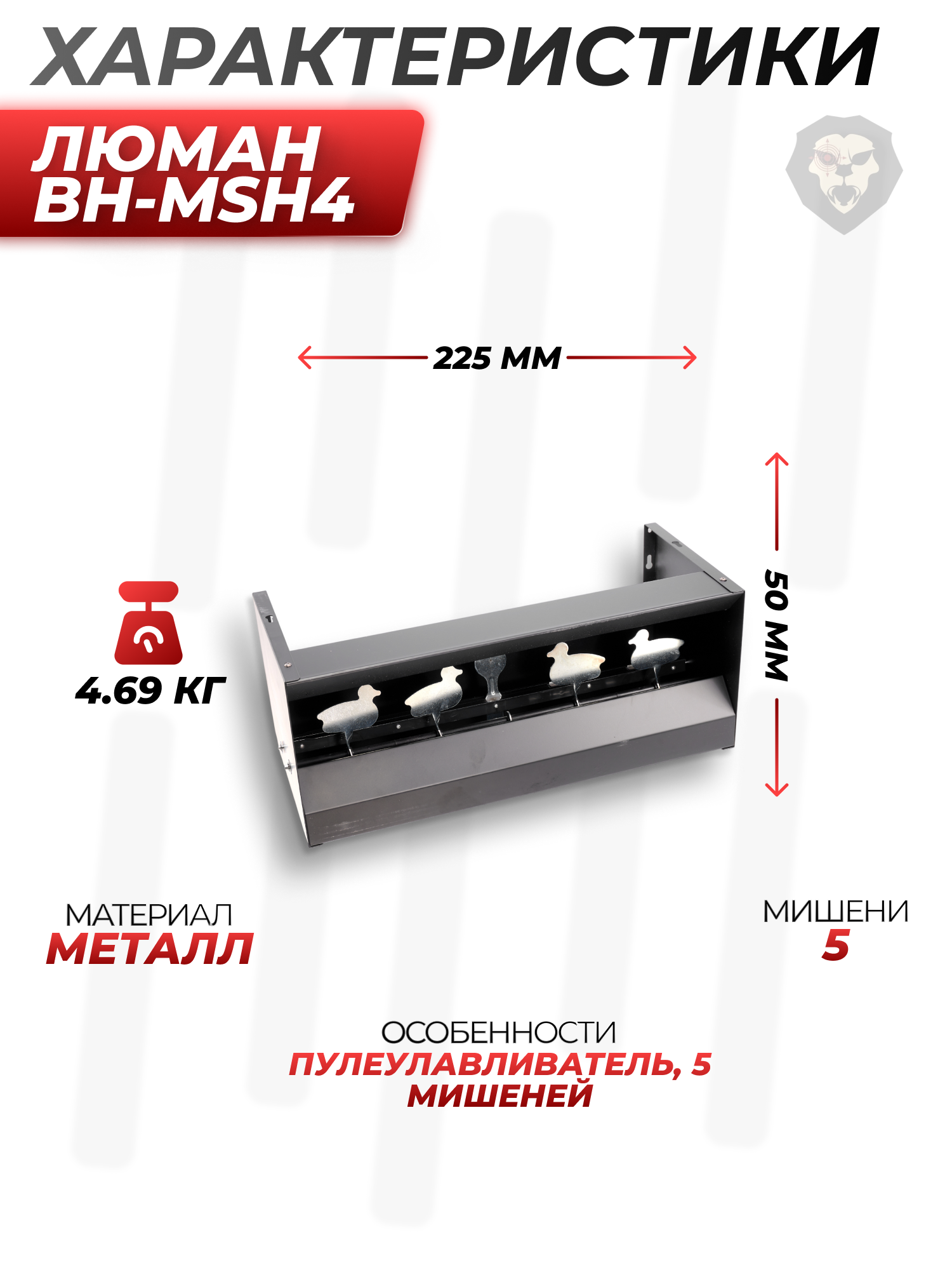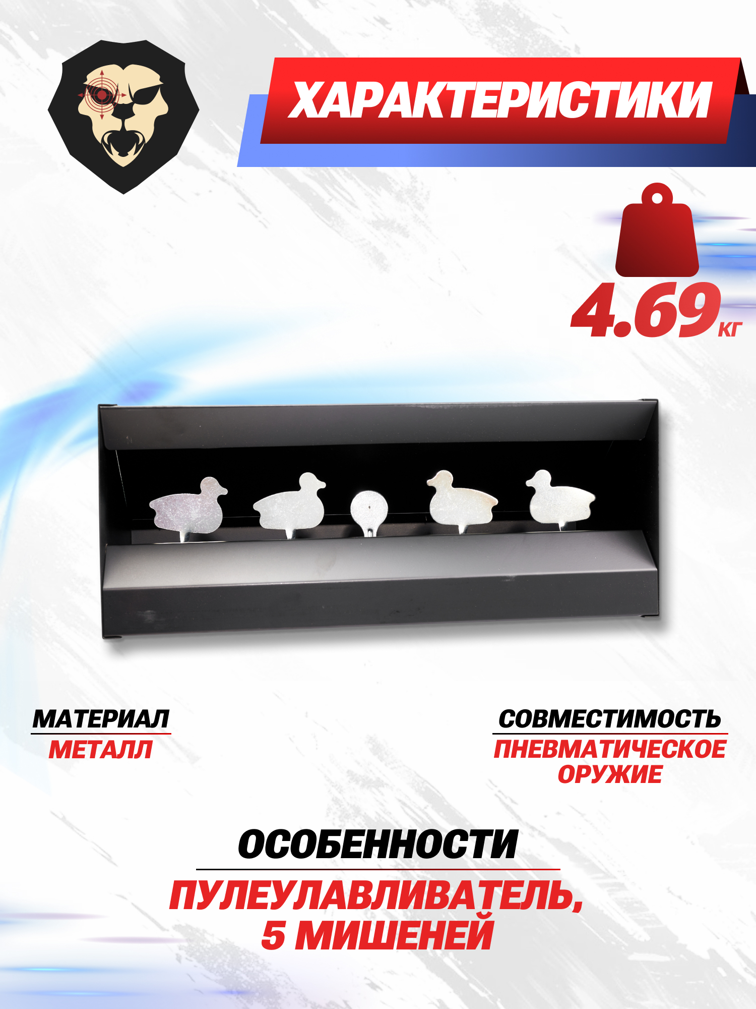 | Особенности | Пулеулавливатель, 5 мишеней |