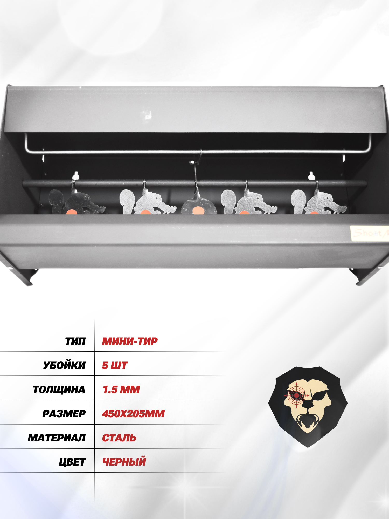 | Особенности | Пулеулавливатель, 4 силуэта белки, кнопка сброса, сталь 1.5 мм, 450x205 мм |
