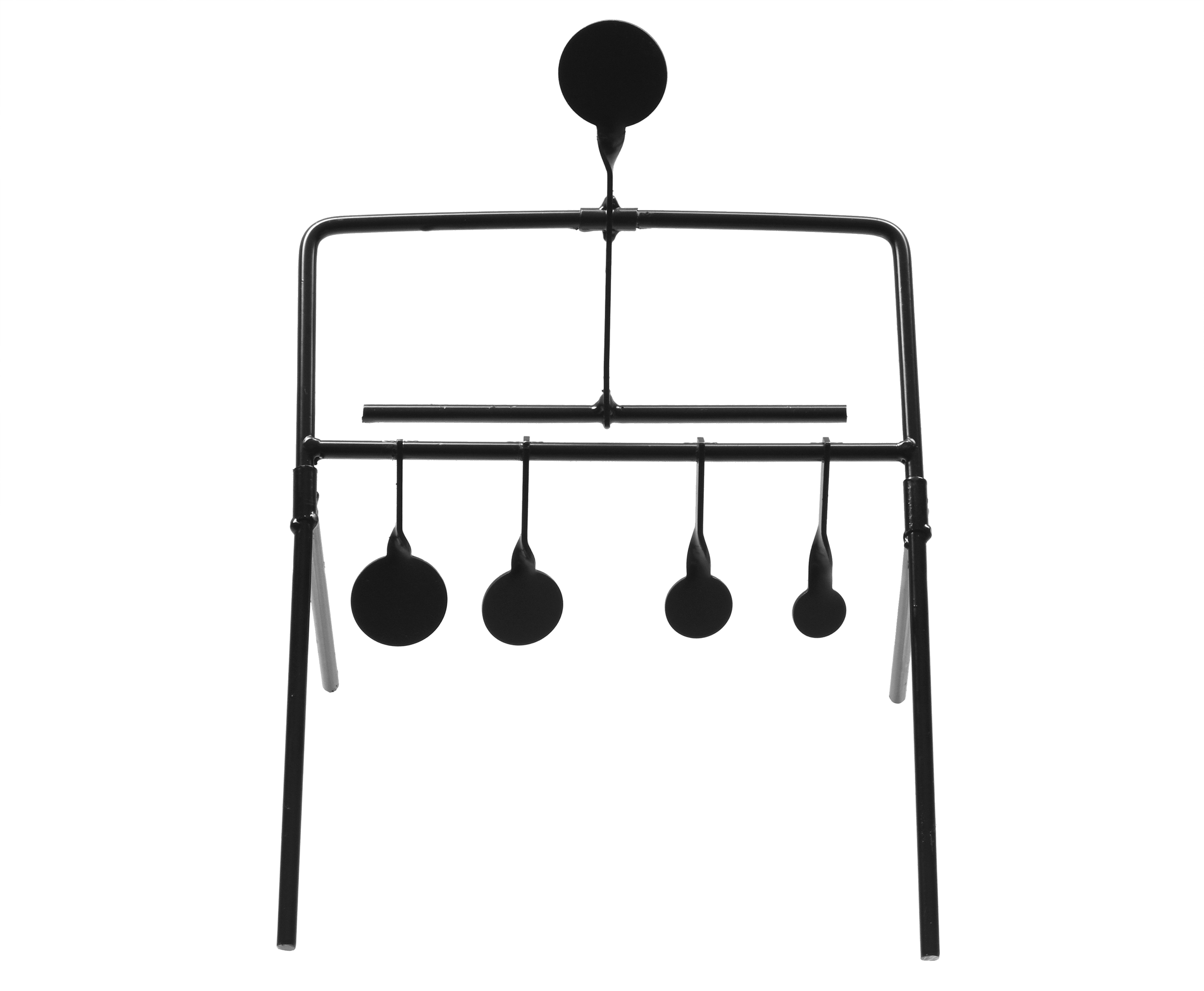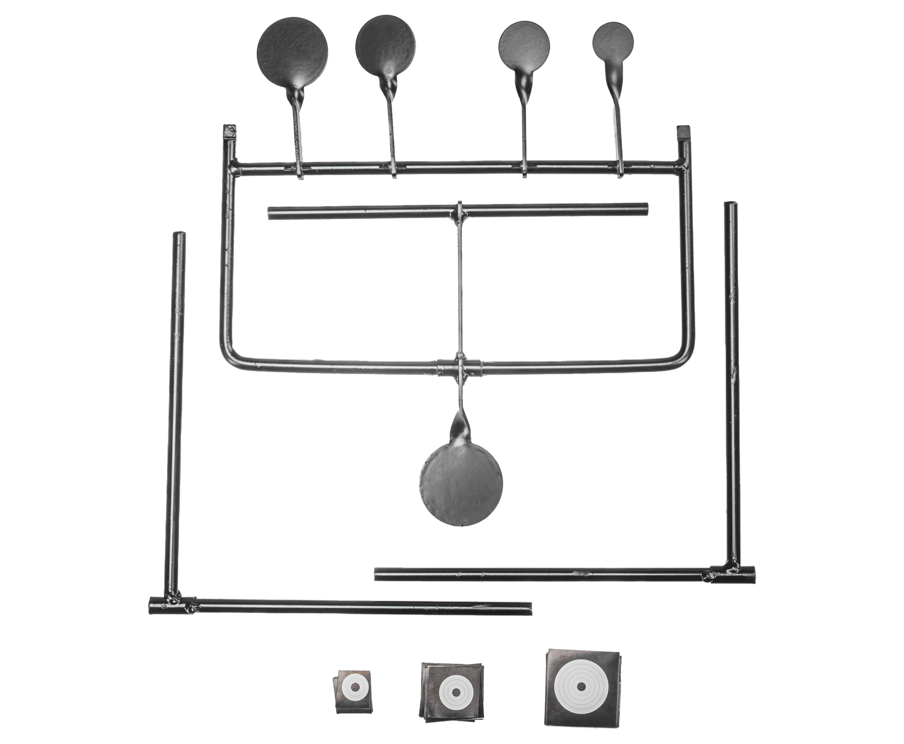 Мишени минитира Stalker подвешиваются на перекладину. Конструкция предусматривает самосброс - при метком попадании 4 тарелочки прокручиваются вокруг оси и под действием силы тяжести ложатся на фиксирующую жердь. В свою очередь, последняя соединена с верхней пятой целью - поражение оной приводит к дистанционному обнулению, ввиду чего стрелку не потребуется покидать свою позицию.