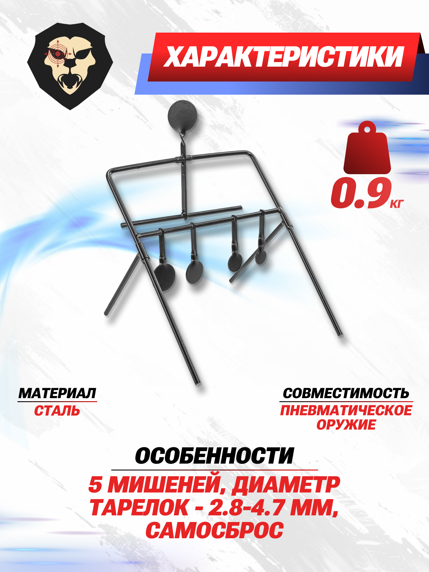 | Особенности | 5 мишеней, диаметр тарелок - 2.8-4.7 мм, самосброс |