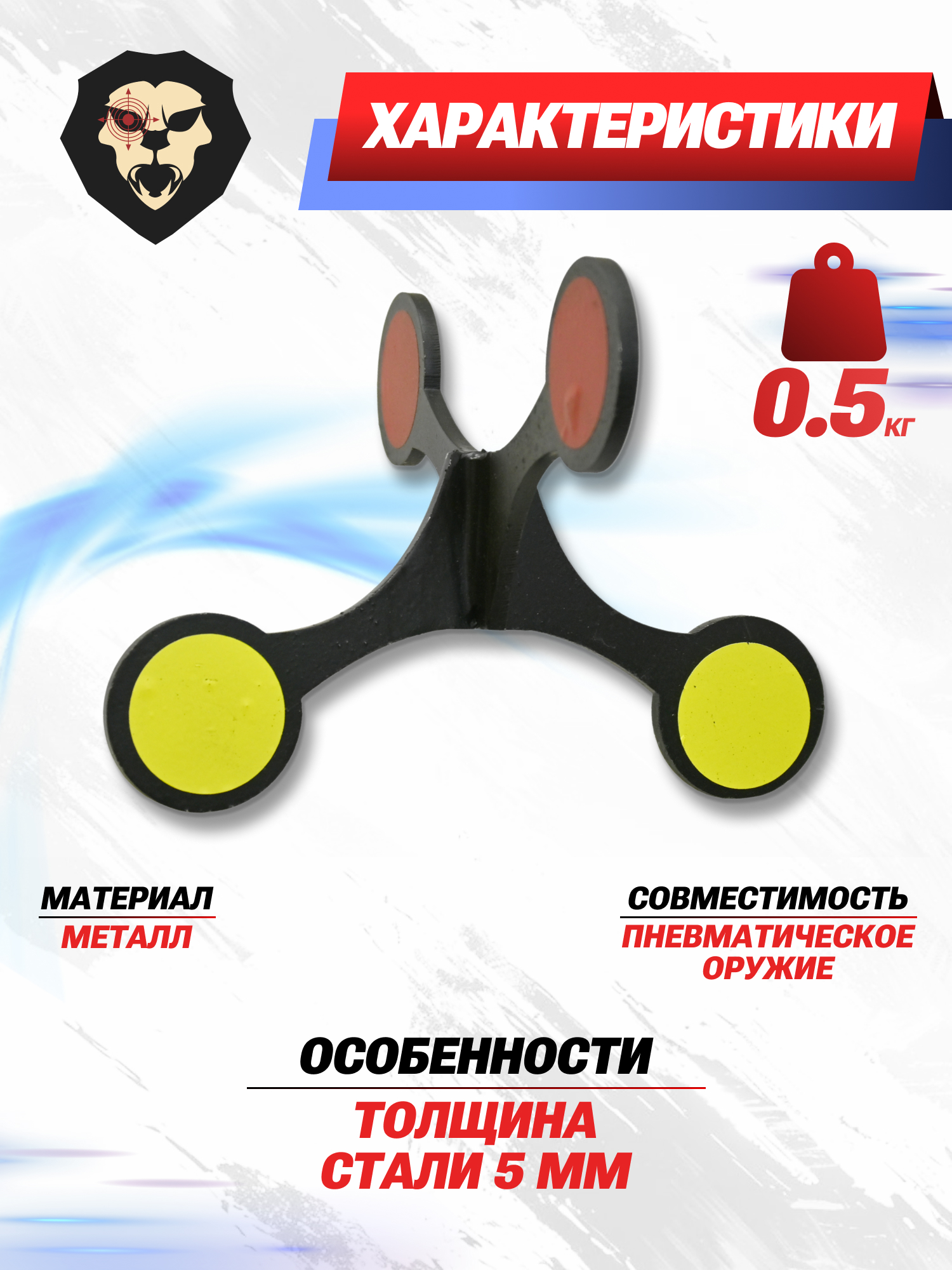Мишень перекатная Шутман подойдет опытным стрелкам и новичкам, так как не нуждается в сборке с применением специального инструмента. Монолитная конструкция изготавливается из листа 5 мм стали и представляет собой четыре лопасти, скрепленные друг с другом сварным швом. На концах скрещенного каркаса расположены круглые гонги, при этом 3 из них выполняют функцию опоры, а последняя играет роль цели.