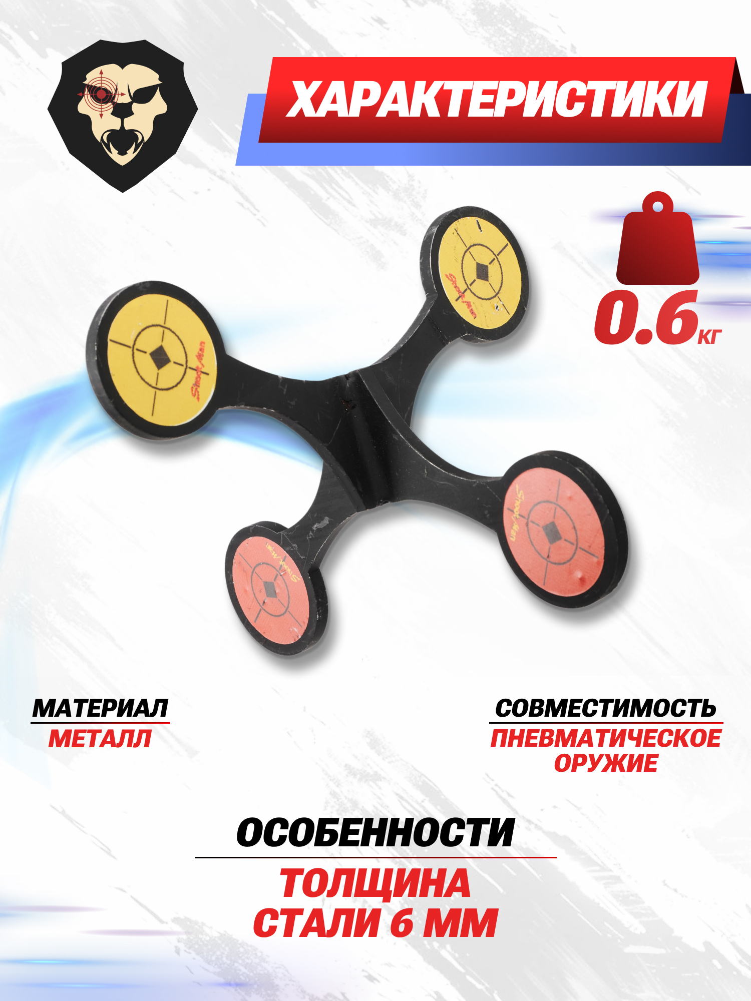 Металлическая мишень обрабатывается защитным порошковым составом, который оберегает поверхность от возникновения очагов коррозии. При этом краска черного матового цвета не трескается от многократных попаданий, что дополнительно повышает износостойкость модели. Для обеспечения максимального срока службы изготовитель рекомендует применять изделие на расстоянии 10-15 метров от стрелка.