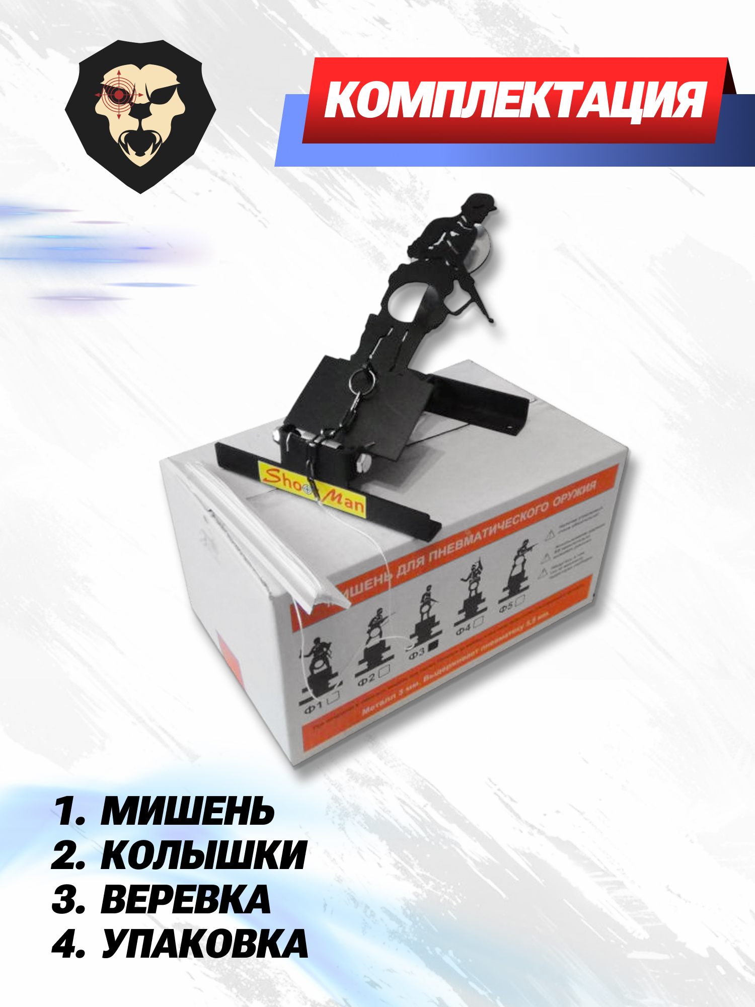 | Комплектация | Мишень, монтажные колышки — 4 шт, веревка, краткая документация, упаковка |