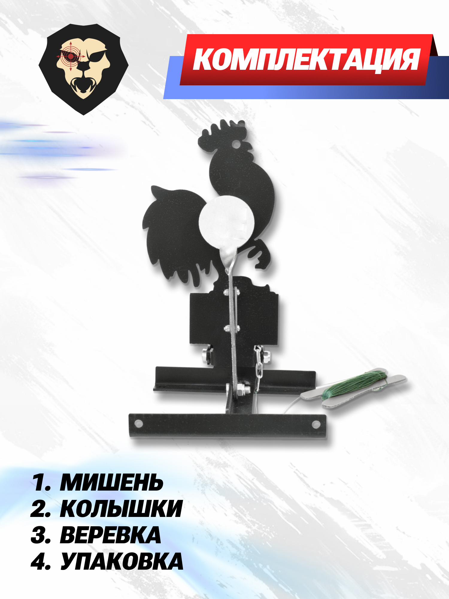| Комплектация | Мишень, монтажные колышки — 4 шт, веревка, краткая документация, упаковка |