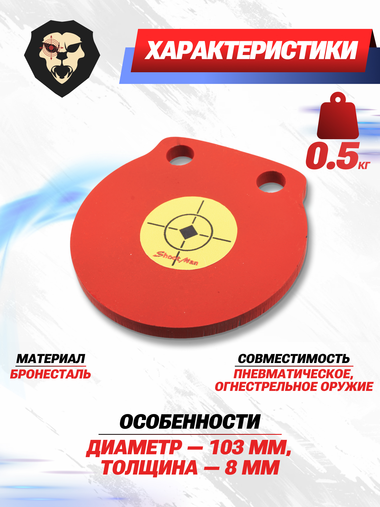 Мишень гонг Шутман имеет диаметр 10.3 сантиметра. Размер оптимален для стрельбы из пистолета на близких дистанциях.
