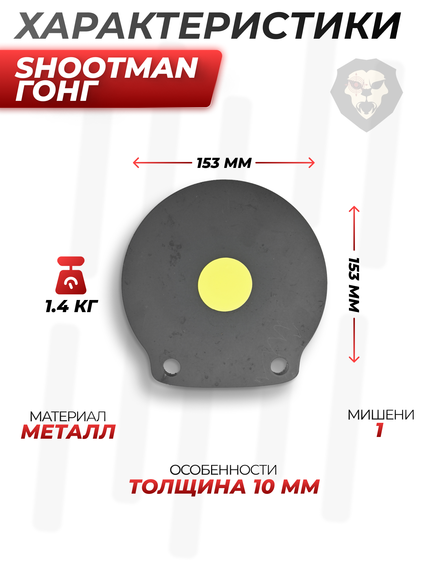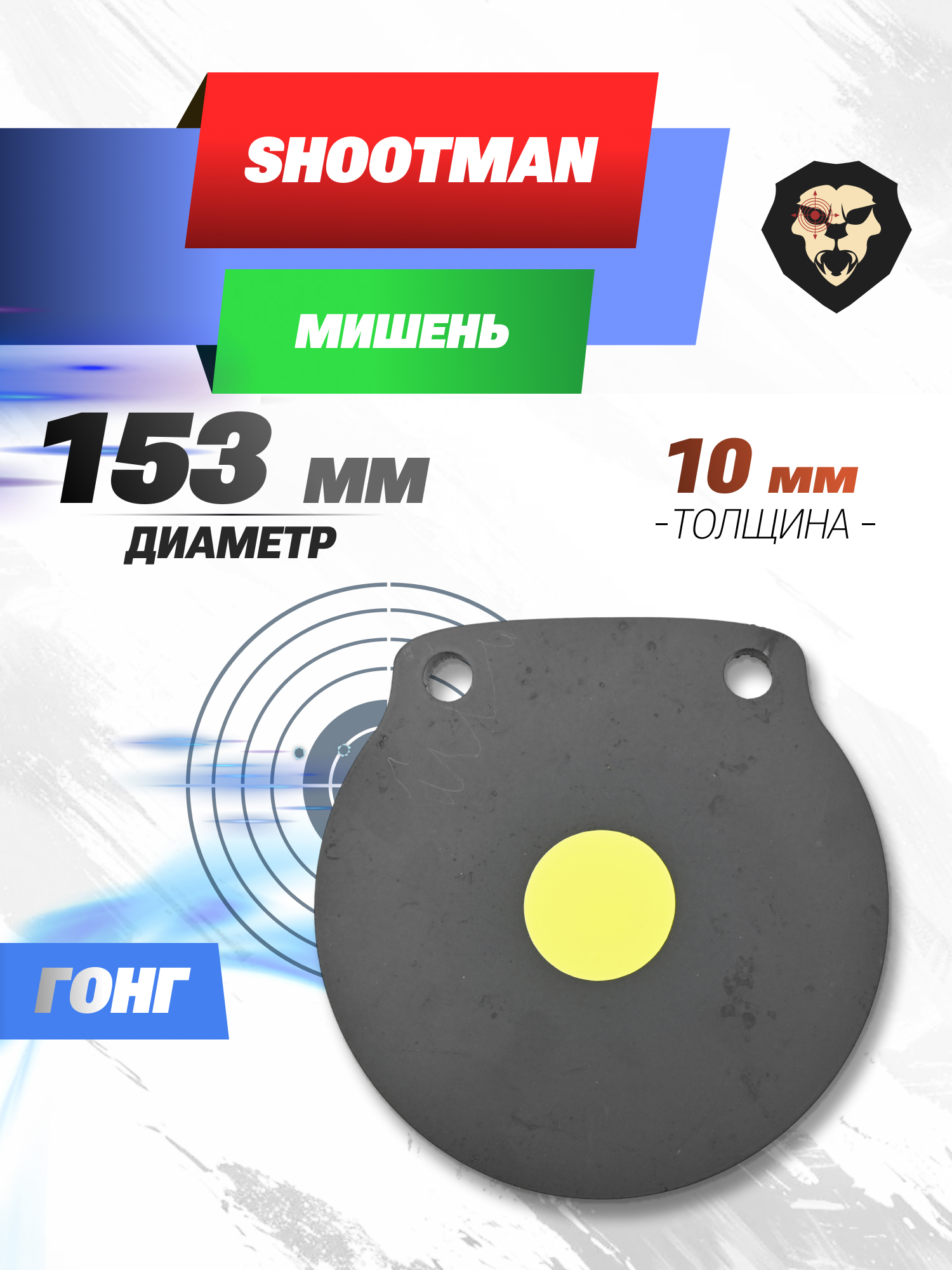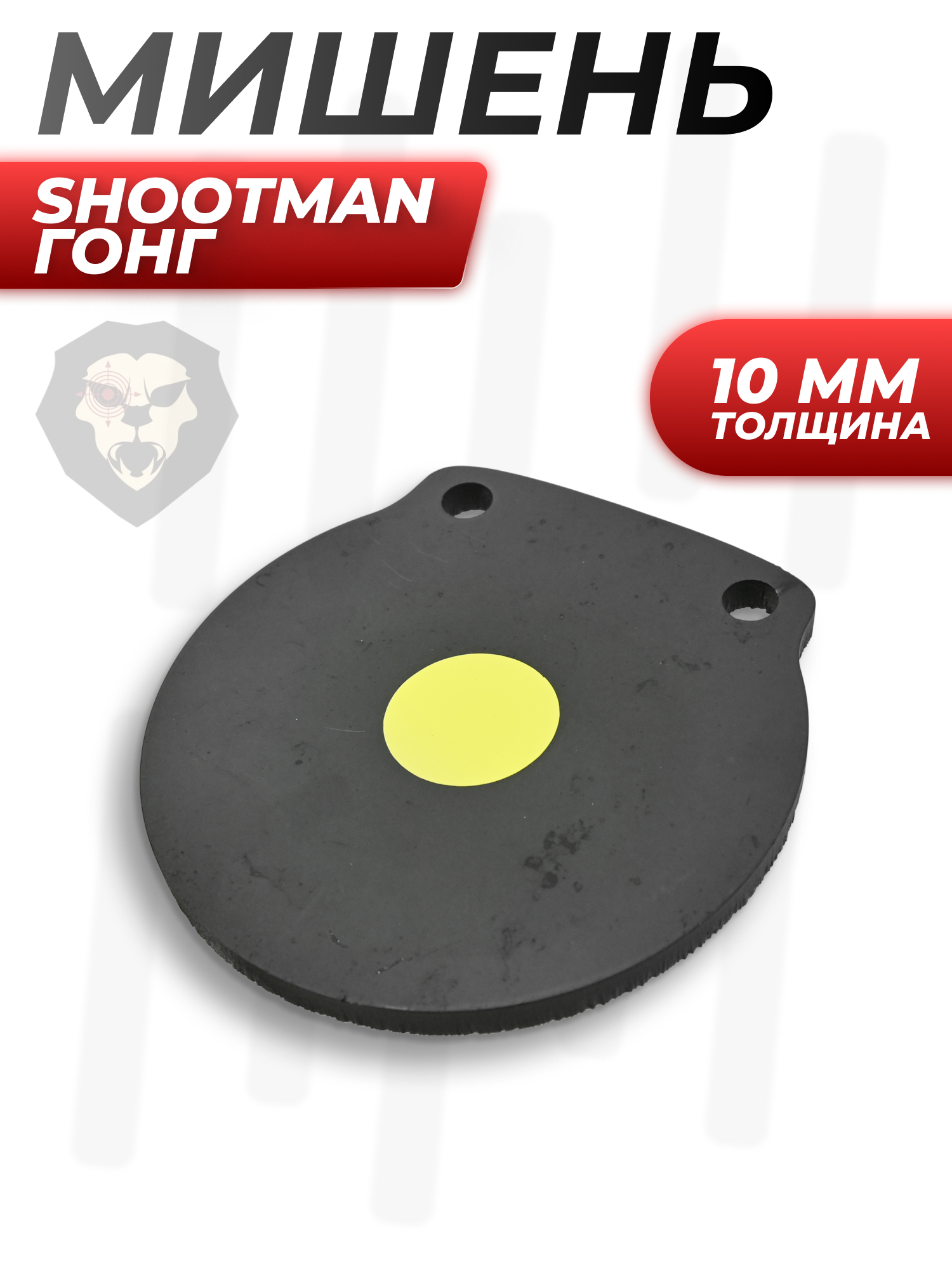 Устойчивость к постоянным попаданиям станет основным фактором выбора мишени для тира. В случае с гонгом Shootman для пневматического оружия ресурс изделия практически неограничен, т.к. толщина изделия составила 10 мм.