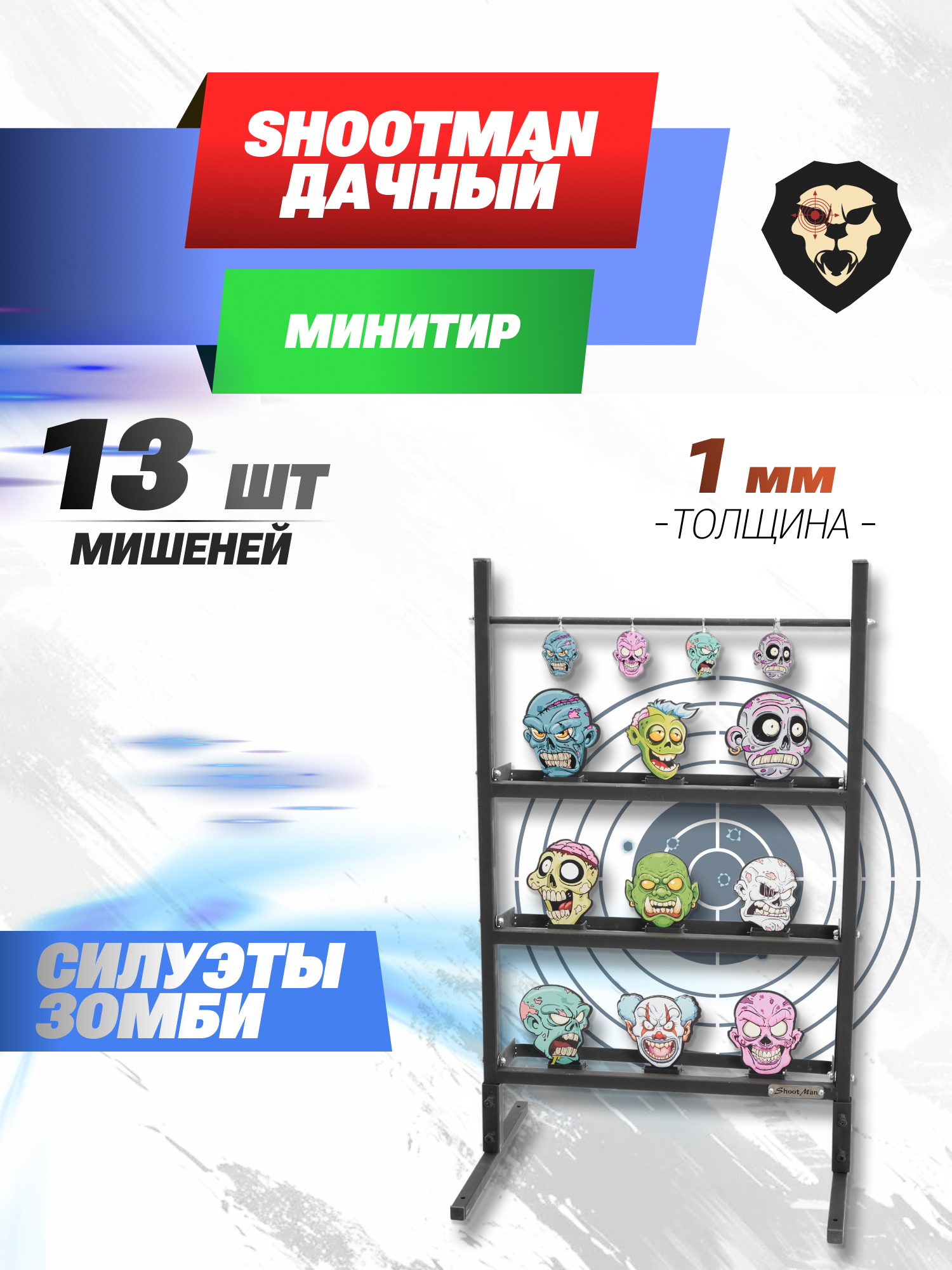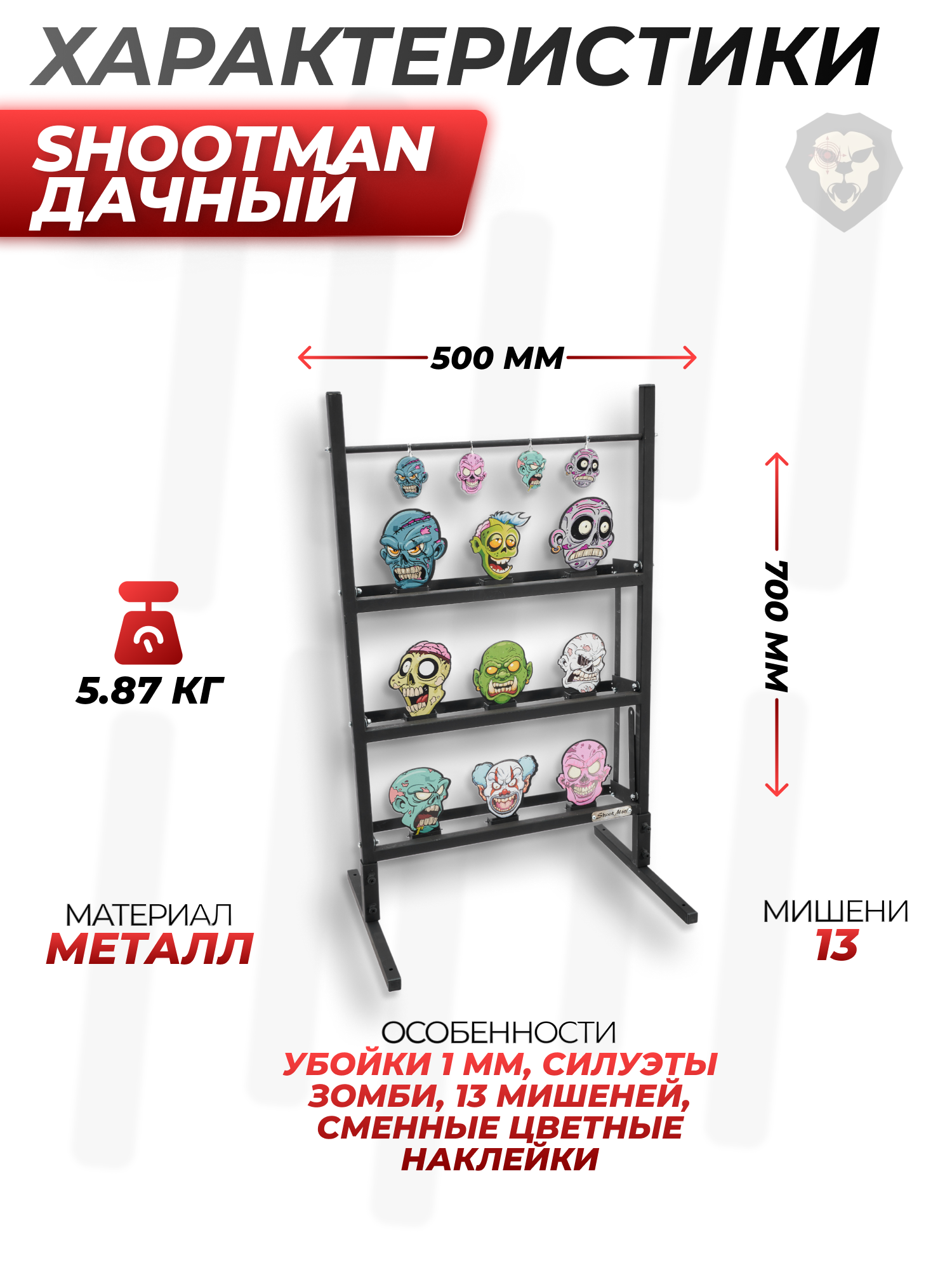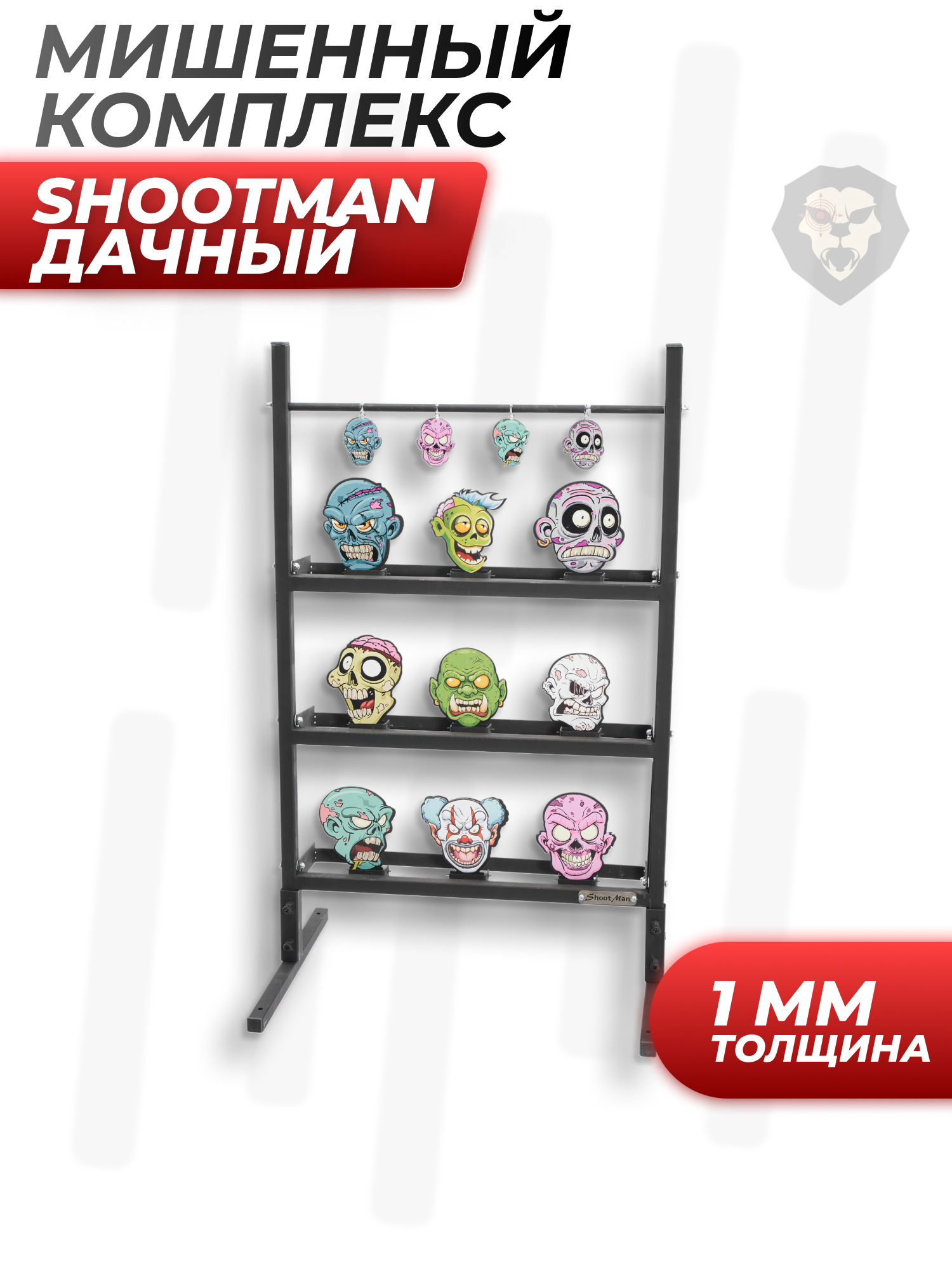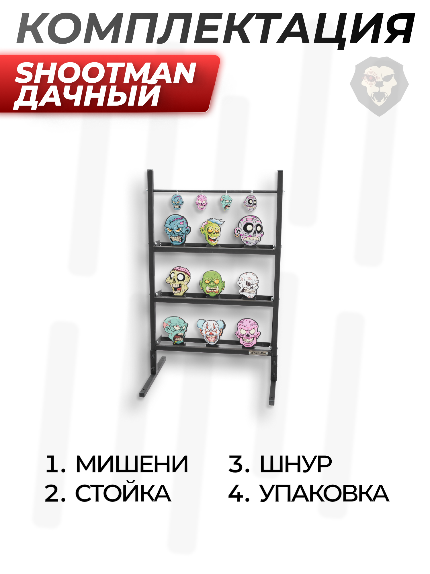 Российская фирма-производитель Shootman специализируется на изготовлении оборудования для тиров и домашних стрельбищ. В ассортименте компании присутствуют металлические подъемные цели на различную тематику, которые компонуются в набор со специальным штативом.