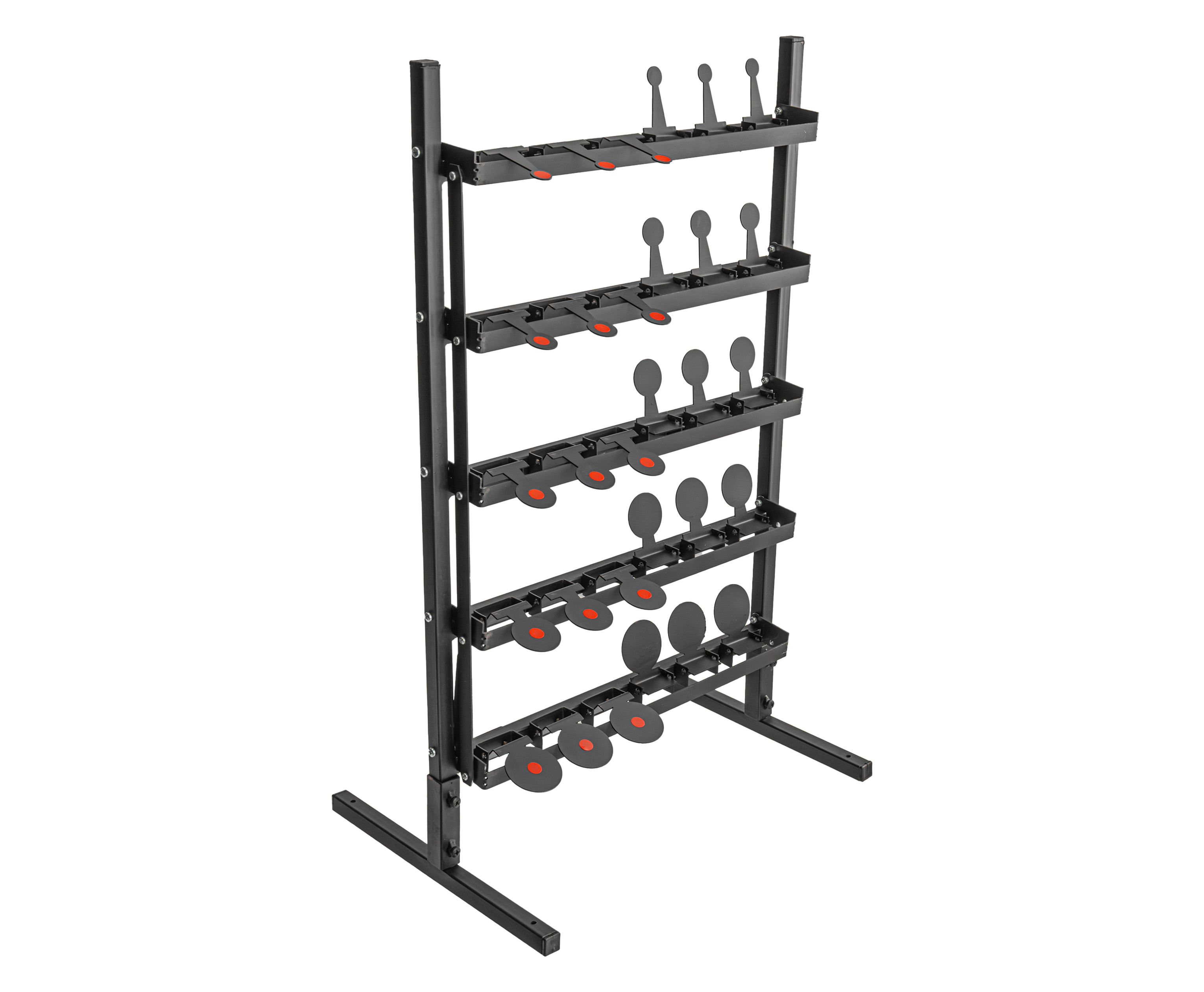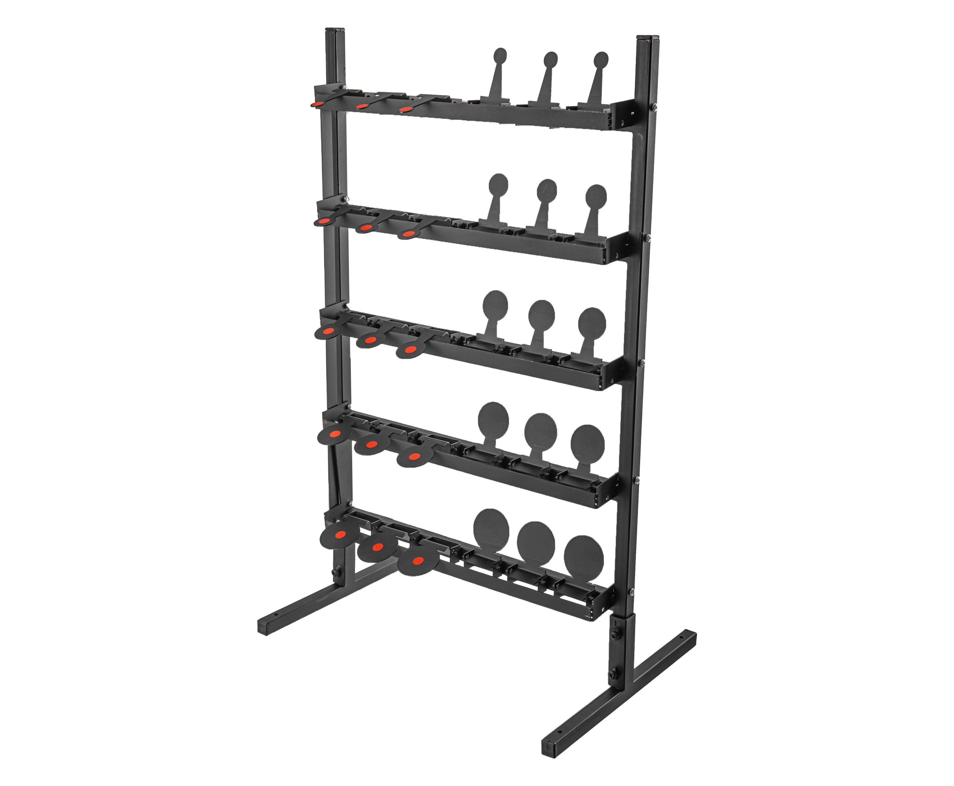 Позади каждого ряда предусмотрена скоба, соединенная с боковой тягой и рычагом. При поражении мишени опрокидываются назад и фиксируются, после чего достаточно потянуть за механизм для возвращения изначального положения. В комплекте поставляется 20-метровый трос для осуществления указанной манипуляции, не покидая огневой рубеж.