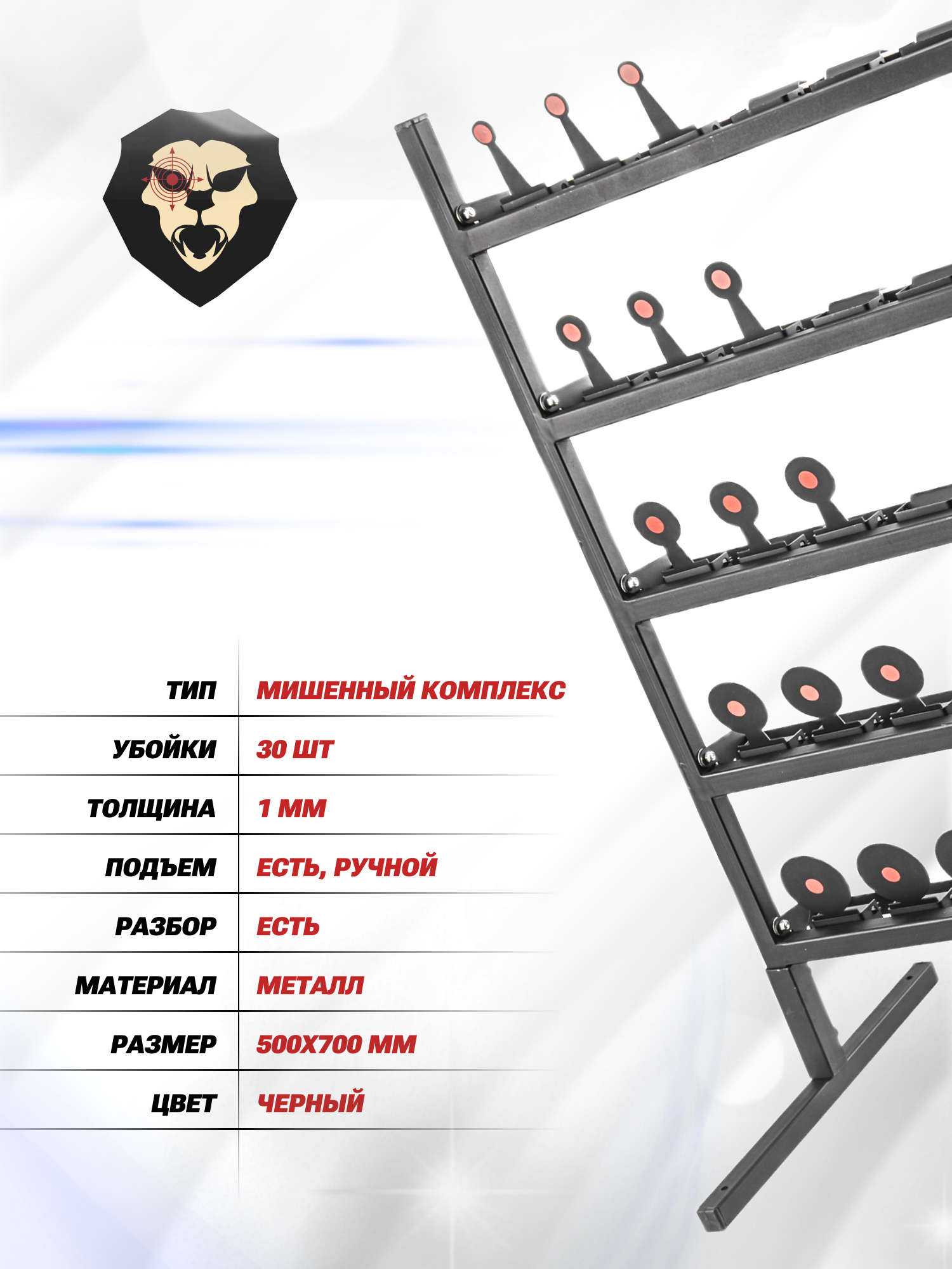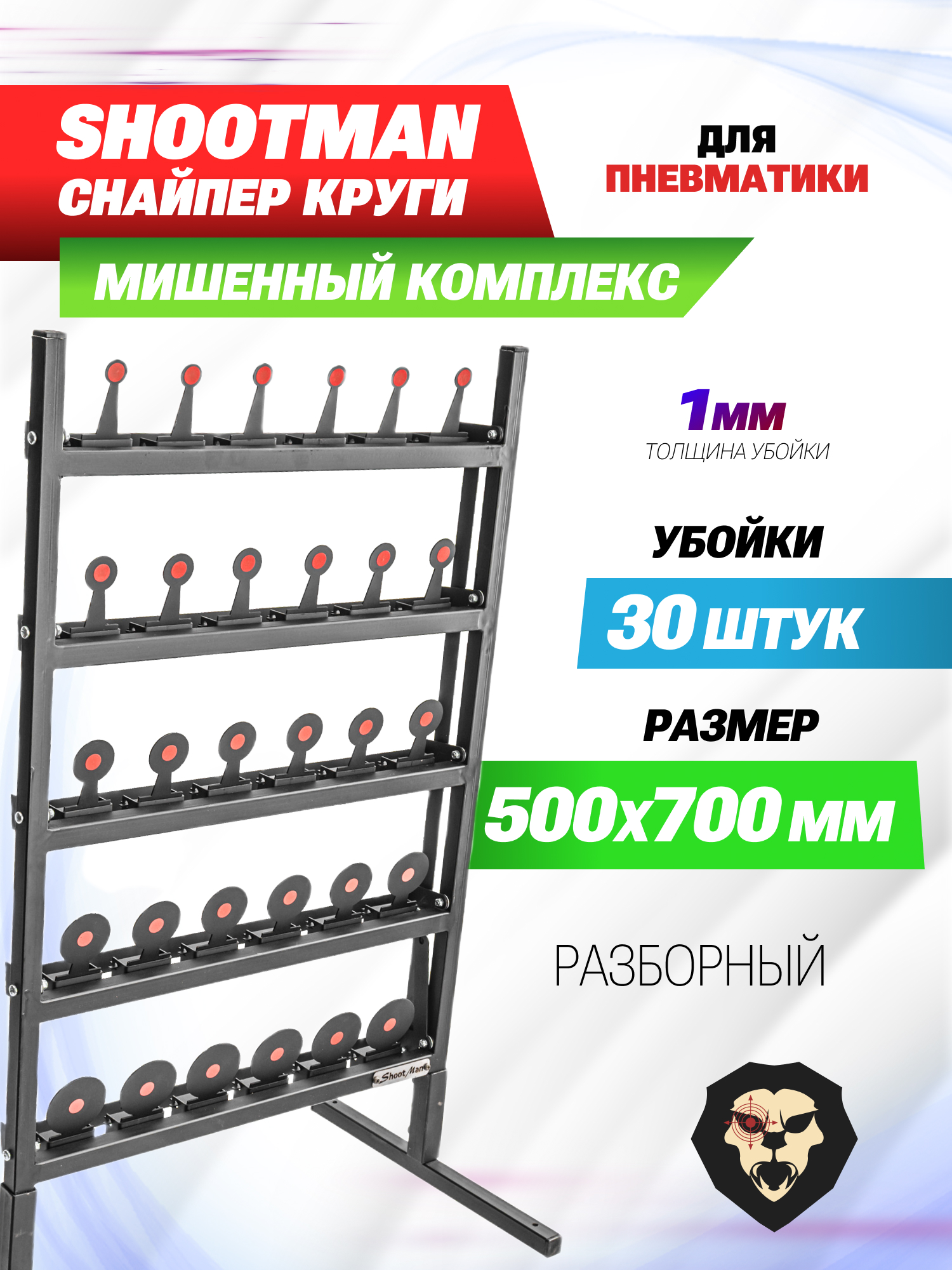 | Особенности | Убойки 1 мм, 30 мишеней, размер рамы 500x700 мм |