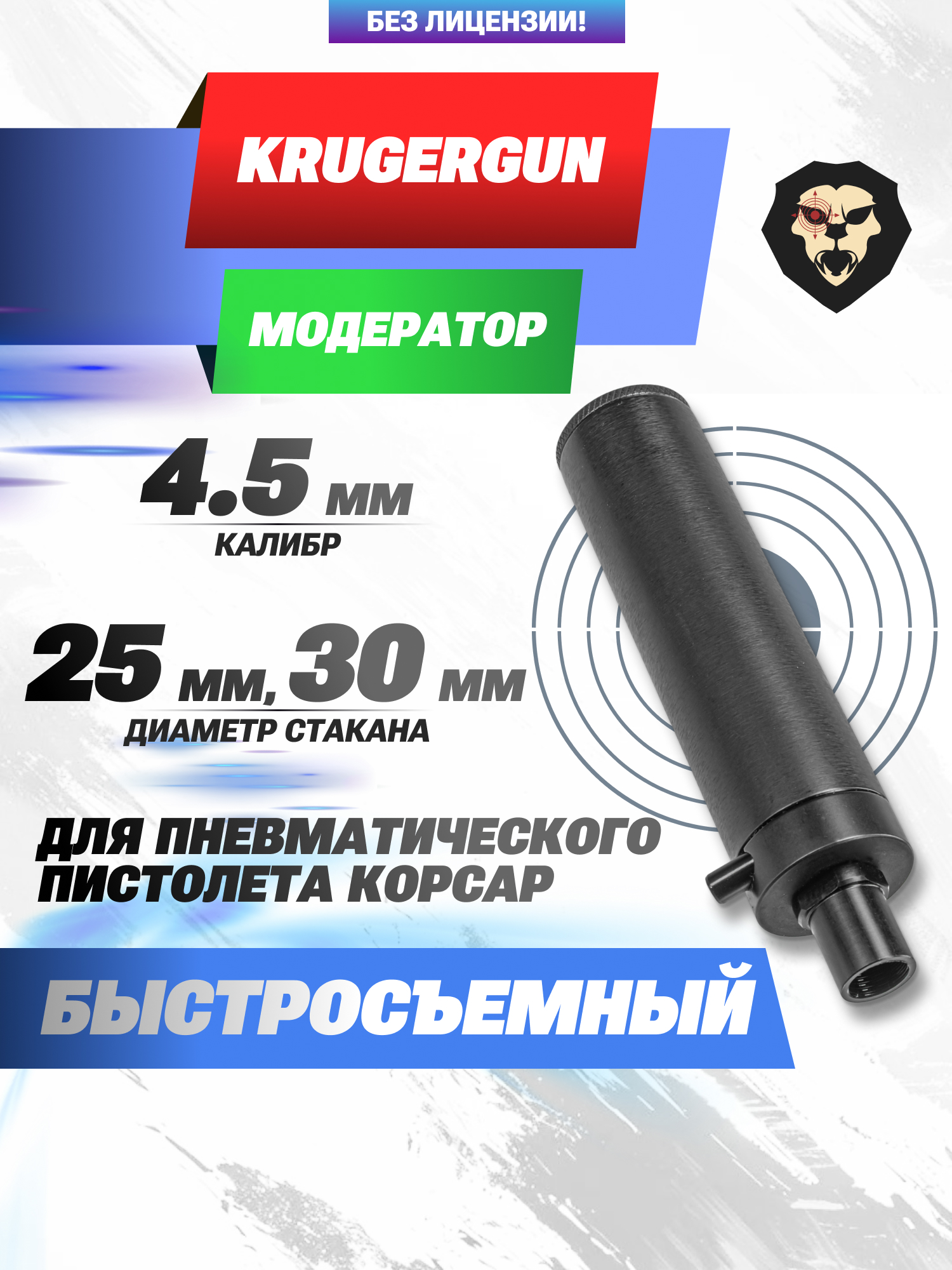 Характеристики модератора KrugerGun для пистолета Корсар 4.5 мм (быстросъемный)