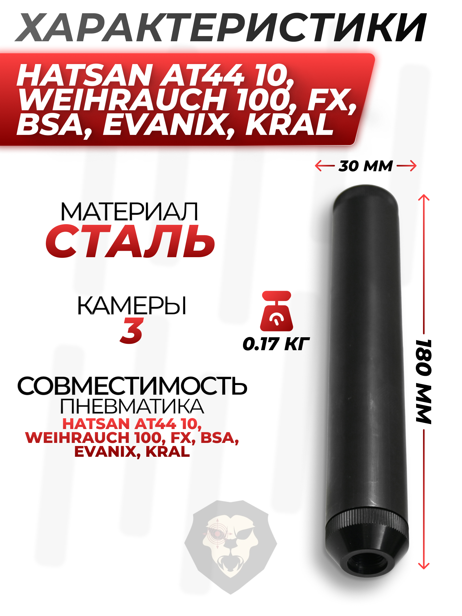 | Совместимость | Для Hatsan AT44 10, Weihrauch 100, FX, BSA, Evanix, Kral и других винтовок с резьбой 1/2" UNF |
