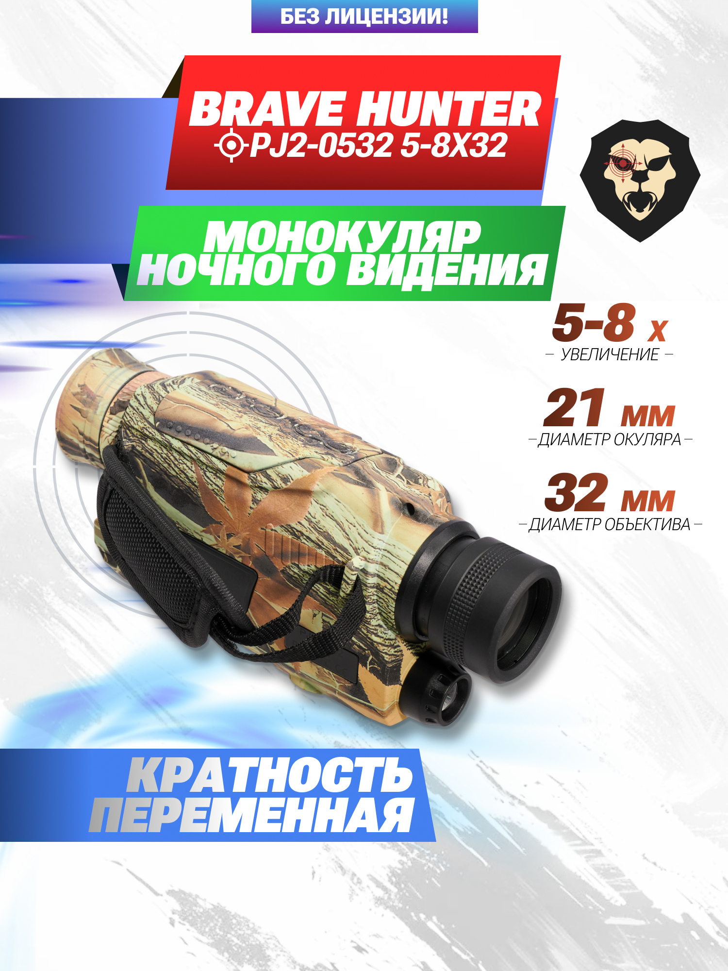Артикул производителя BH-PJ0532 Монокуляр ночного видения Brave Hunter PJ2-0532 5-8x32 (до 200 м, фото, видео, 8GB Micro-SD, BH-PJ0532) по низкой цене 14575 руб. Модель со штрихкодом производителя Вы можете оплатить наложенным платежем с доставкой или в отделении транспортной компании (ПЭК, СДЭК, Boxberry). Ваш заказ со штрихкодом 2000000096100 забрать на почте с оплатой при получении в любой части Российской Федерации.