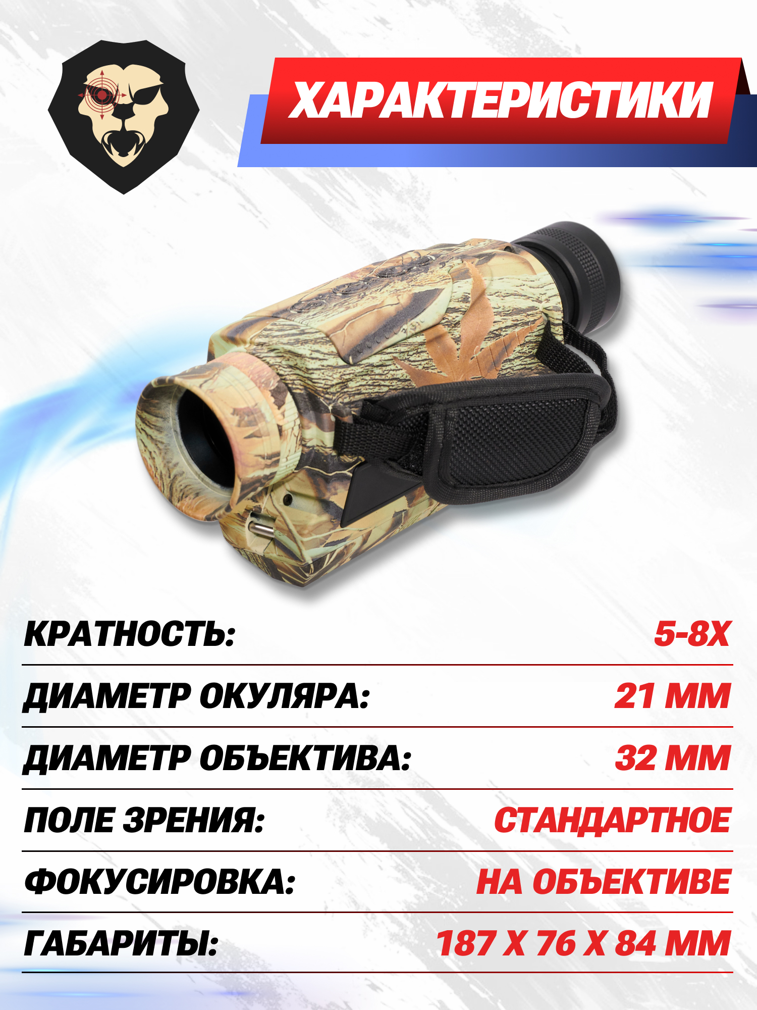 | Увеличение | 5-8x |