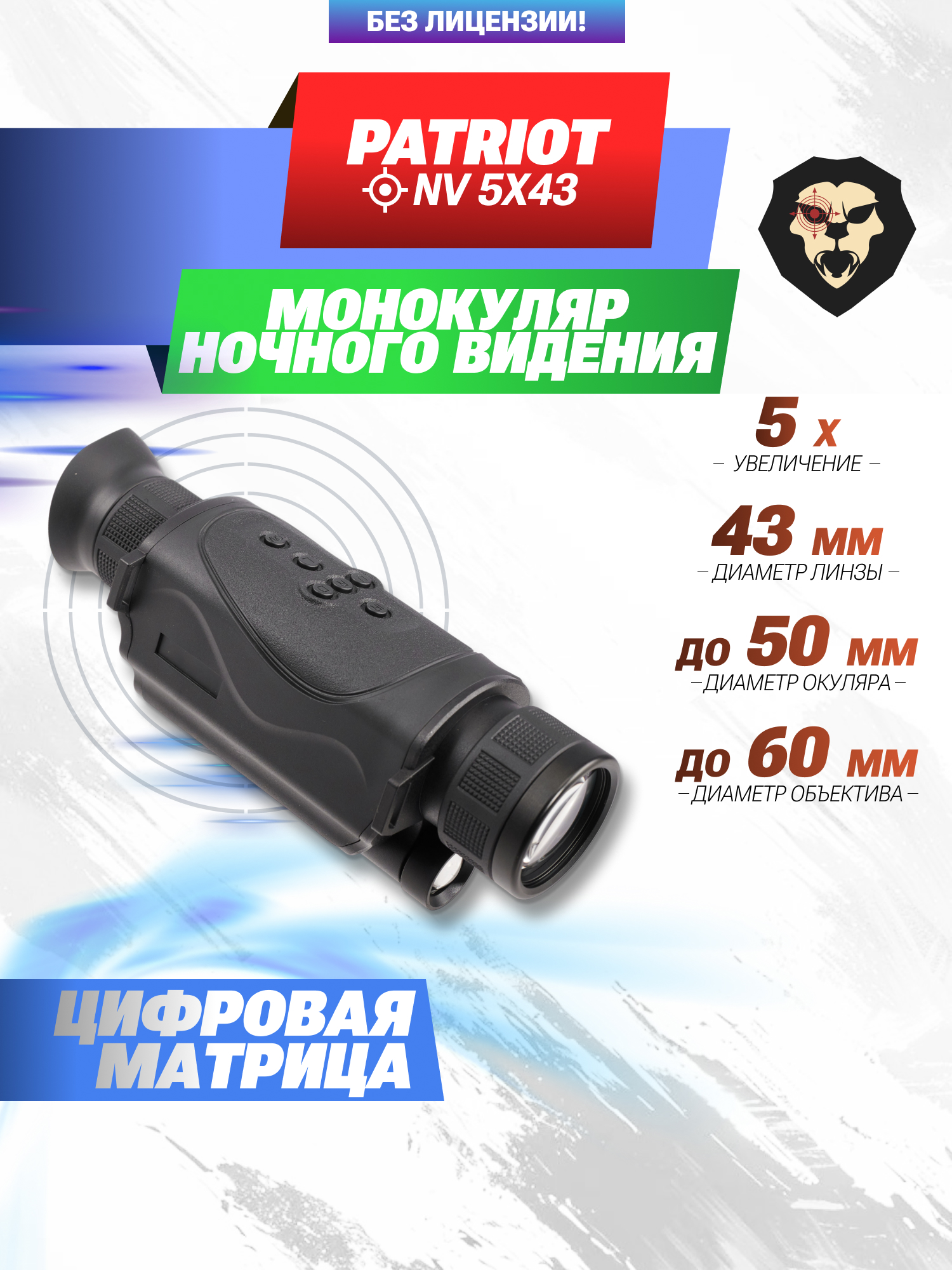 Монокуляр ночного видения Patriot NV 5x43 (1000 м, USB, BH-NV543) купить в интернет-магазине Popadiv10.