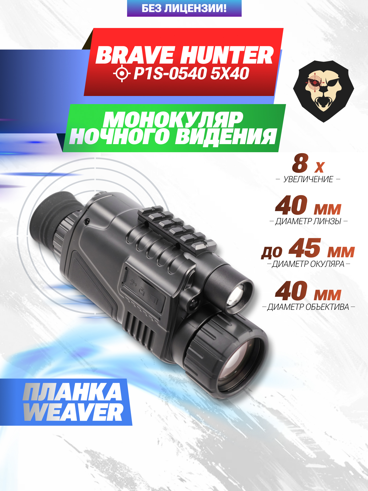 Информация о товаре "Монокуляр ночного видения Brave Hunter P1S-0540 5X40 (BH-PJ0540, USB)" носит ознакомительный характер, и не является публичной офертой, определяемой положениями Статьи 437 Гражданского кодекса Российской Федерации, характеристики, внешний вид, цвет и комплектация могут быть изменены производителем без уведомления.