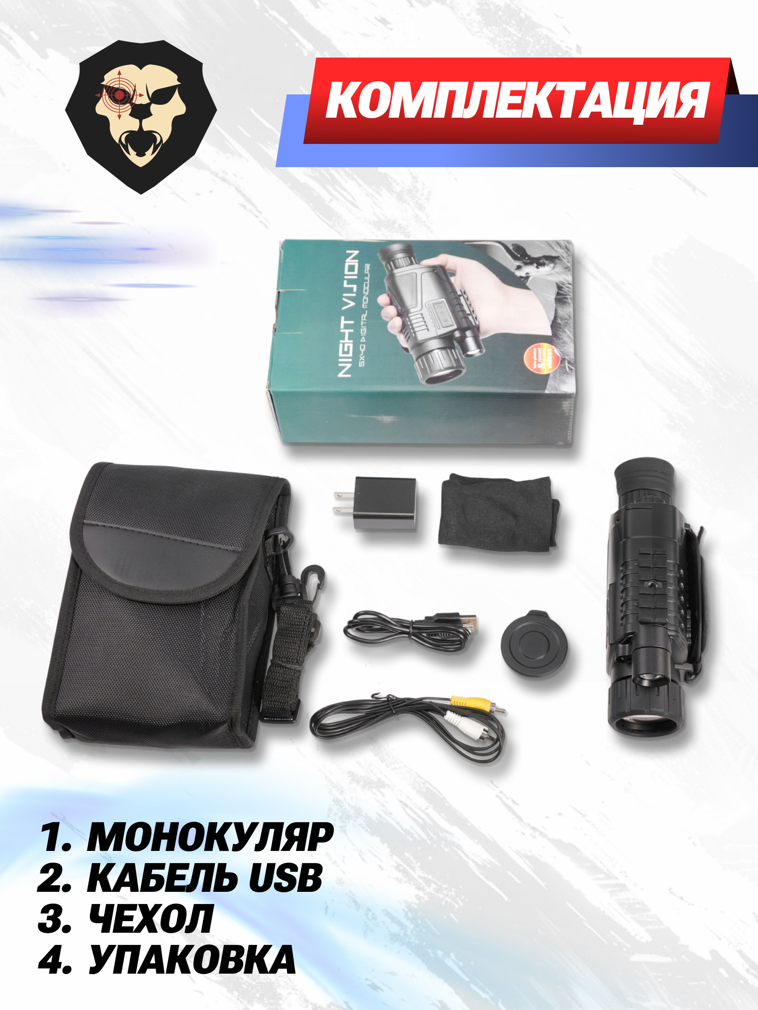 | Комплектация | Монокуляр, кабель USB, салфетка, чехол, краткая документация |