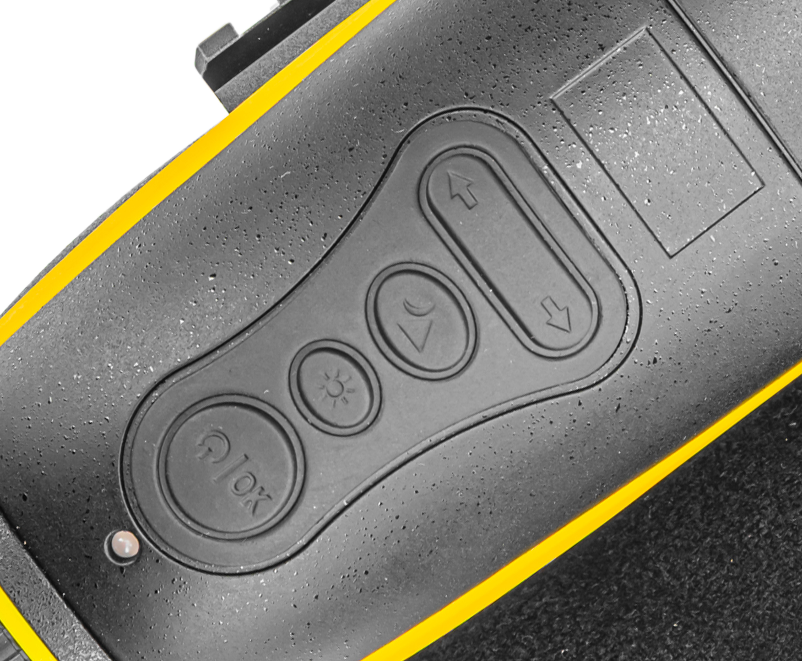Прибор управляется посредством прорезиненной клавиатуры. Помимо кнопки питания здесь также расположены клавиши приближения и выбора режимов. Такое расположение комфортно при удержании одной рукой, чему дополнительно способствует наличие ремешка.