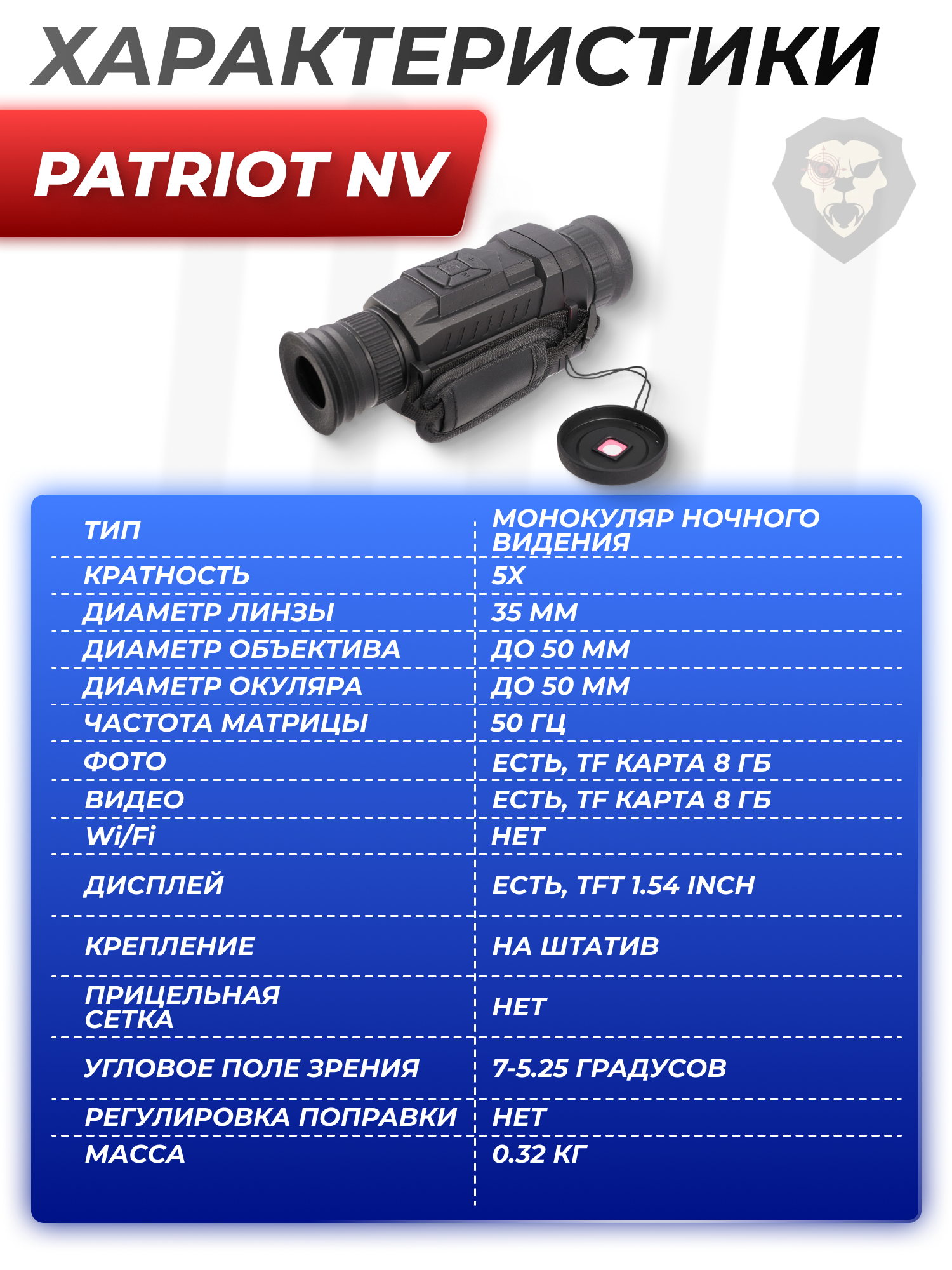 Монокуляр ночного видения Patriot NV 5x35 (300 м, USB, BH-NV535) купить в интернет-магазине Popadiv10.