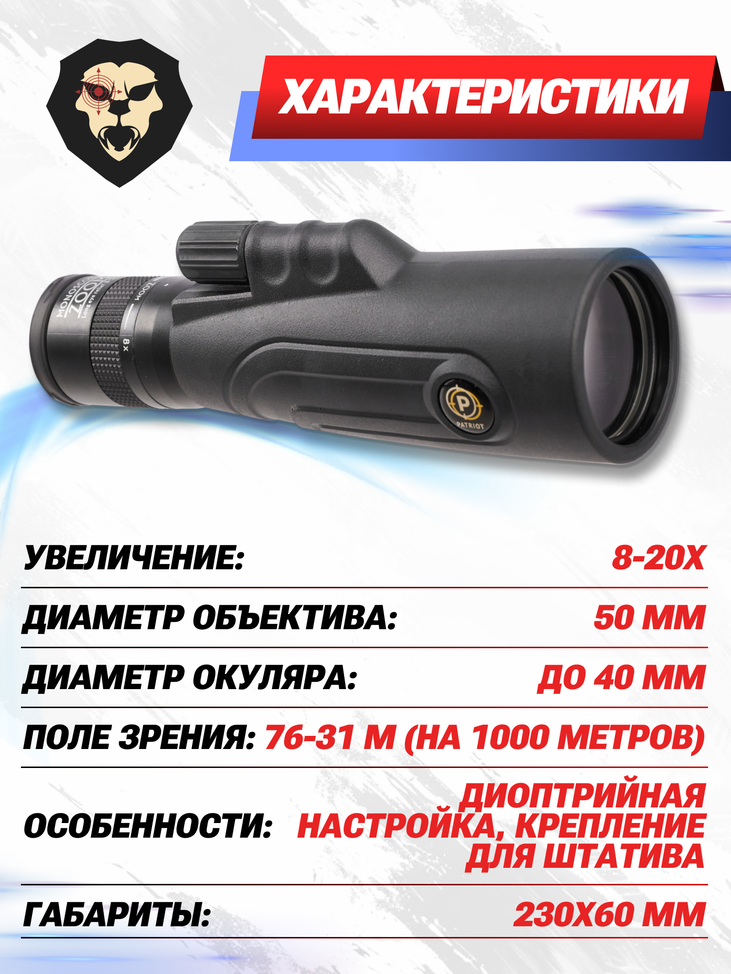 Монокуляр Patriot Dt 8-20х50 (BH-MP820) купить в интернет-магазине Popadiv10.