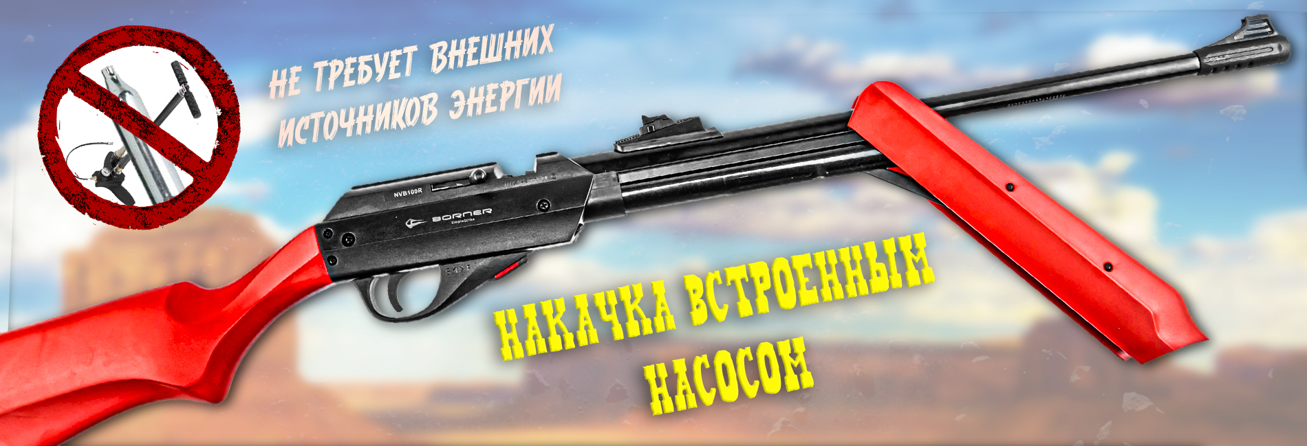 Все, что нужно для создания энергии выстрела, уже есть в самой винтовке Borner. Конструкция основана на накопительном резервуаре по типу того, что установлен в ПСП - при нажатии на спуск открывается клапан, выпускающий воздух в перепуск и далее - в ствол. Только здесь для его накачки не потребуется дополнительное оборудование, т.к. насос встроен - для накачки потребуется двигать рычаг, замаскированный под цевье.
