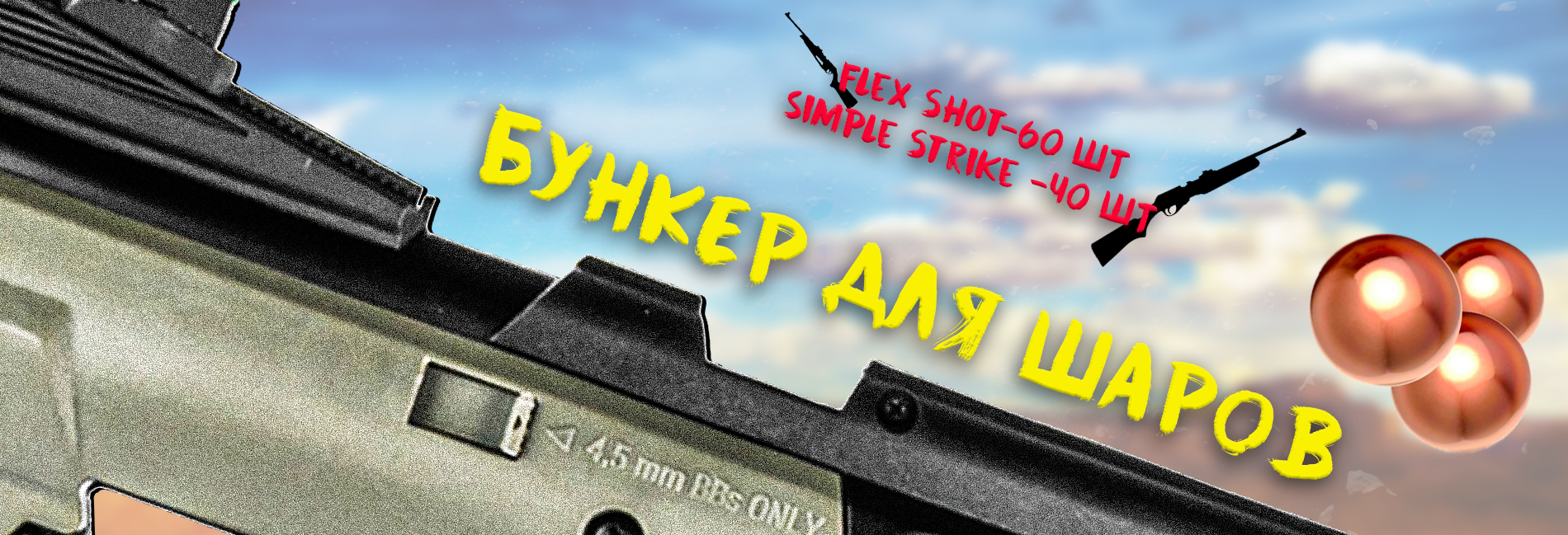 Помимо того, нужно отметить, что здесь реализовали возможность использования сразу двух видов боеприпасов. Это оружие может стрелять как свинцовыми воланчиковыми пульками калибра 4.5 мм, также и стальными шарами той же размерности - за счет этого пневматика подходит как для развлекательного применения, так и для вдумчивой стрельбы на расстояние. Шарики засыпаются во встроенный бункер в количестве 40 шт в Simple Strike, а в Flex Shot войдет до 60 единиц.