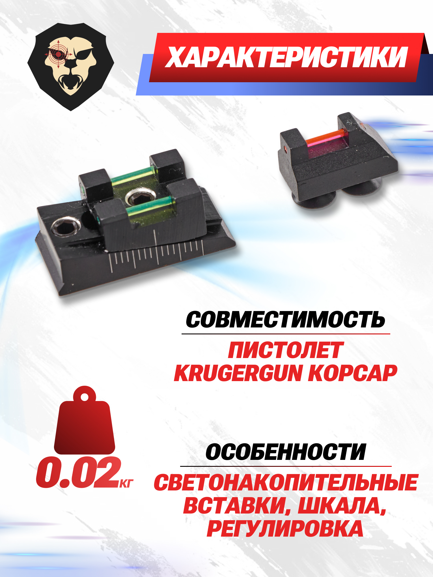 Информация о товаре "Мушка и целик KrugerGun Корсар (металл)" носит ознакомительный характер, и не является публичной офертой, определяемой положениями Статьи 437 Гражданского кодекса Российской Федерации, характеристики, внешний вид, цвет и комплектация могут быть изменены производителем без уведомления.