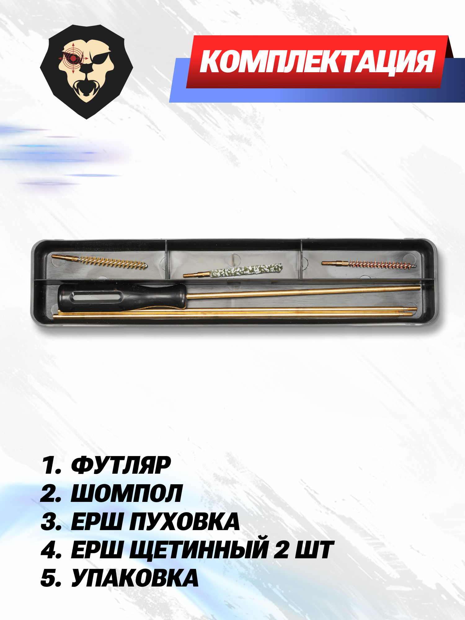 | Комплектация | Пластиковый футляр, шомпол, ерш пуховка, ерш щетинный (пластик), ерш щетинный (латунь), упаковка |