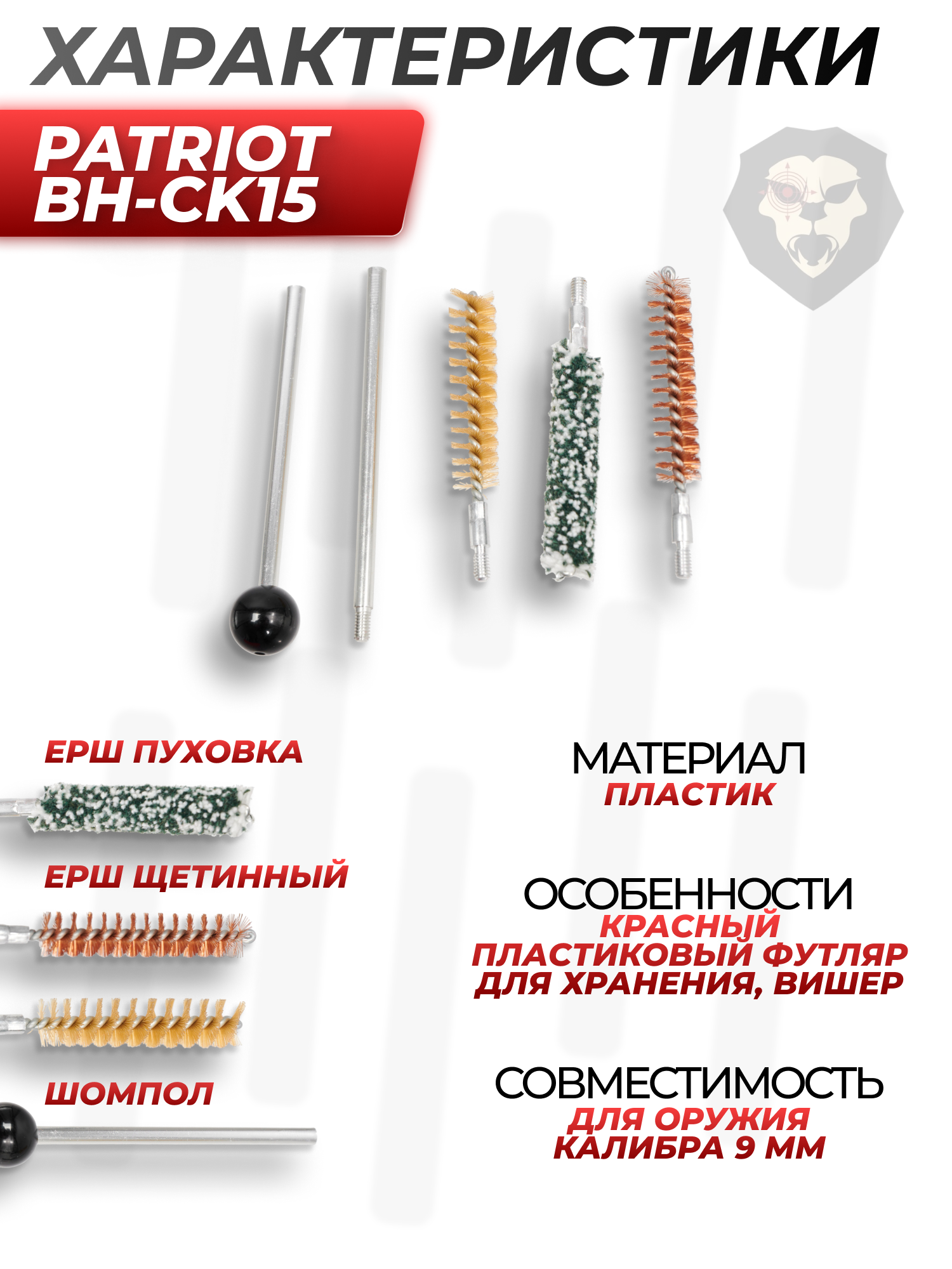 Набор для чистки Patriot BH-CK15 9 мм (пистолетный, 3 ерша) купить в интернет-магазине Popadiv10.