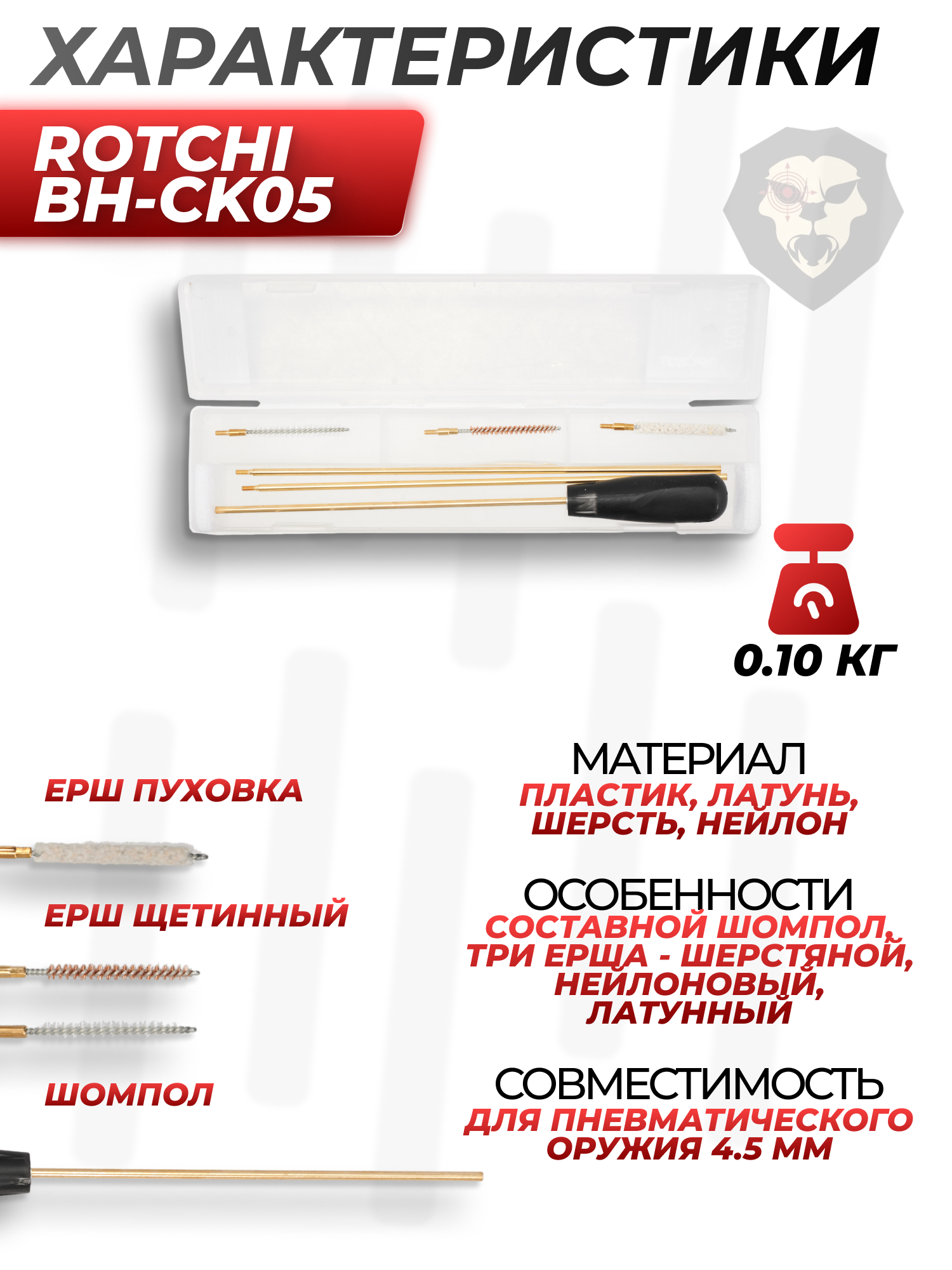 Артикул производителя BH-CK05 Набор для чистки Rotchi BH-CK05 (4.5 мм) по низкой цене 1025 руб. Модель со штрихкодом производителя Вы можете оплатить наложенным платежем с доставкой или в отделении транспортной компании (ПЭК, СДЭК, Boxberry). Ваш заказ со штрихкодом 2000000052878 забрать на почте с оплатой при получении в любой части Российской Федерации.