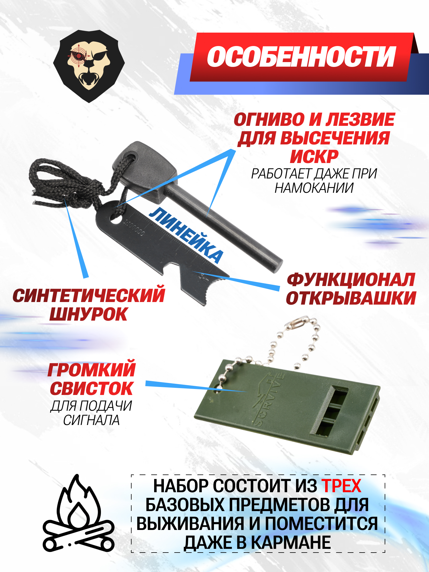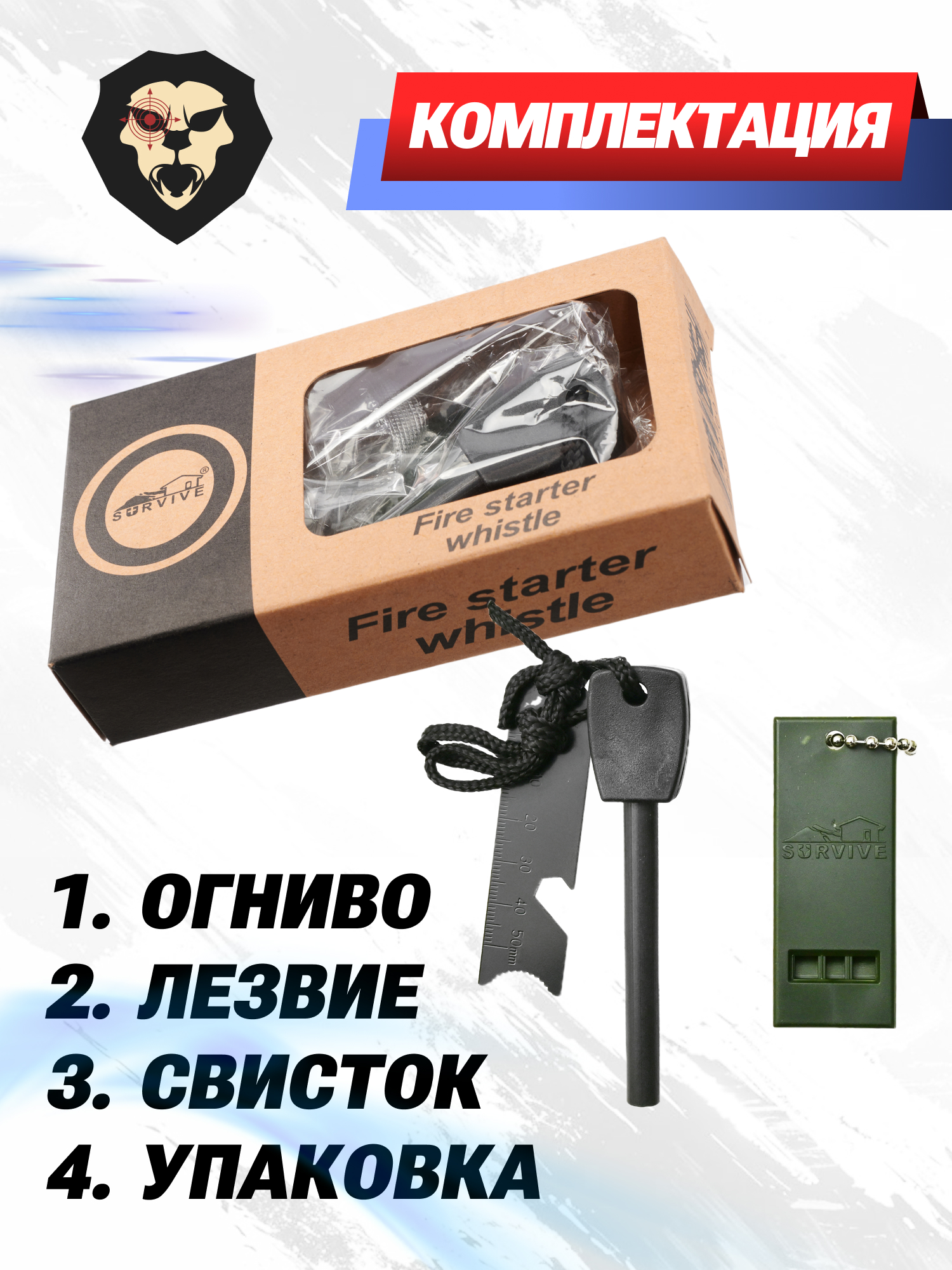 | Комплектация | Огниво, лезвие, свисток, упаковка |