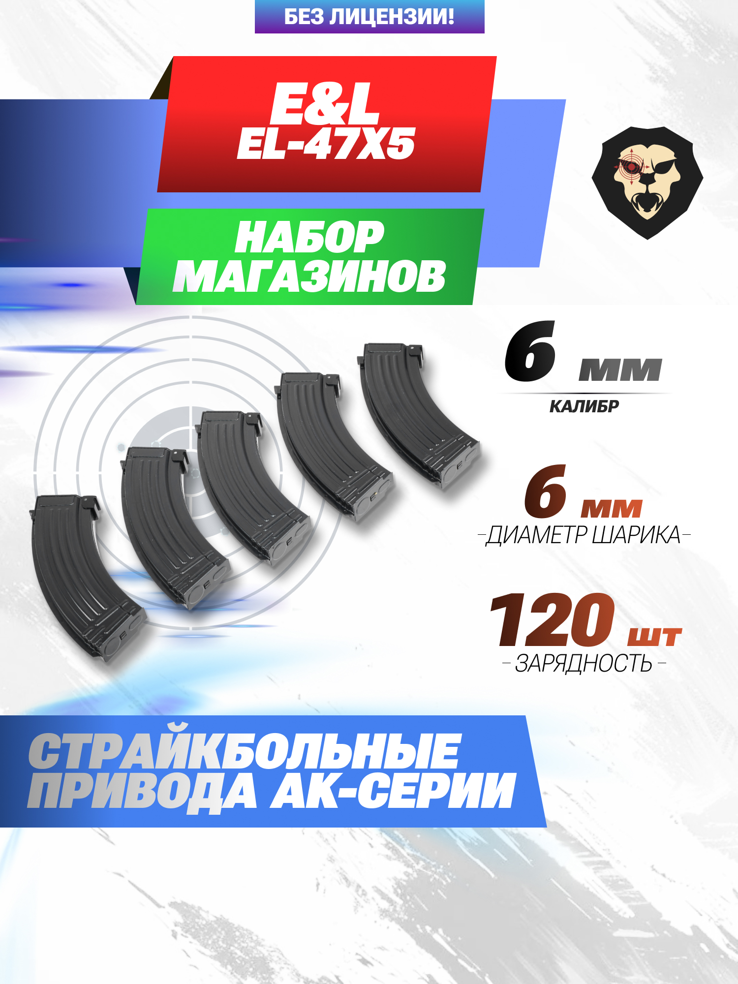Набор механических магазинов E&L EL-47X5 (120 шаров, AK-47, металл, 5 шт) купить в интернет-магазине Popadiv10.
