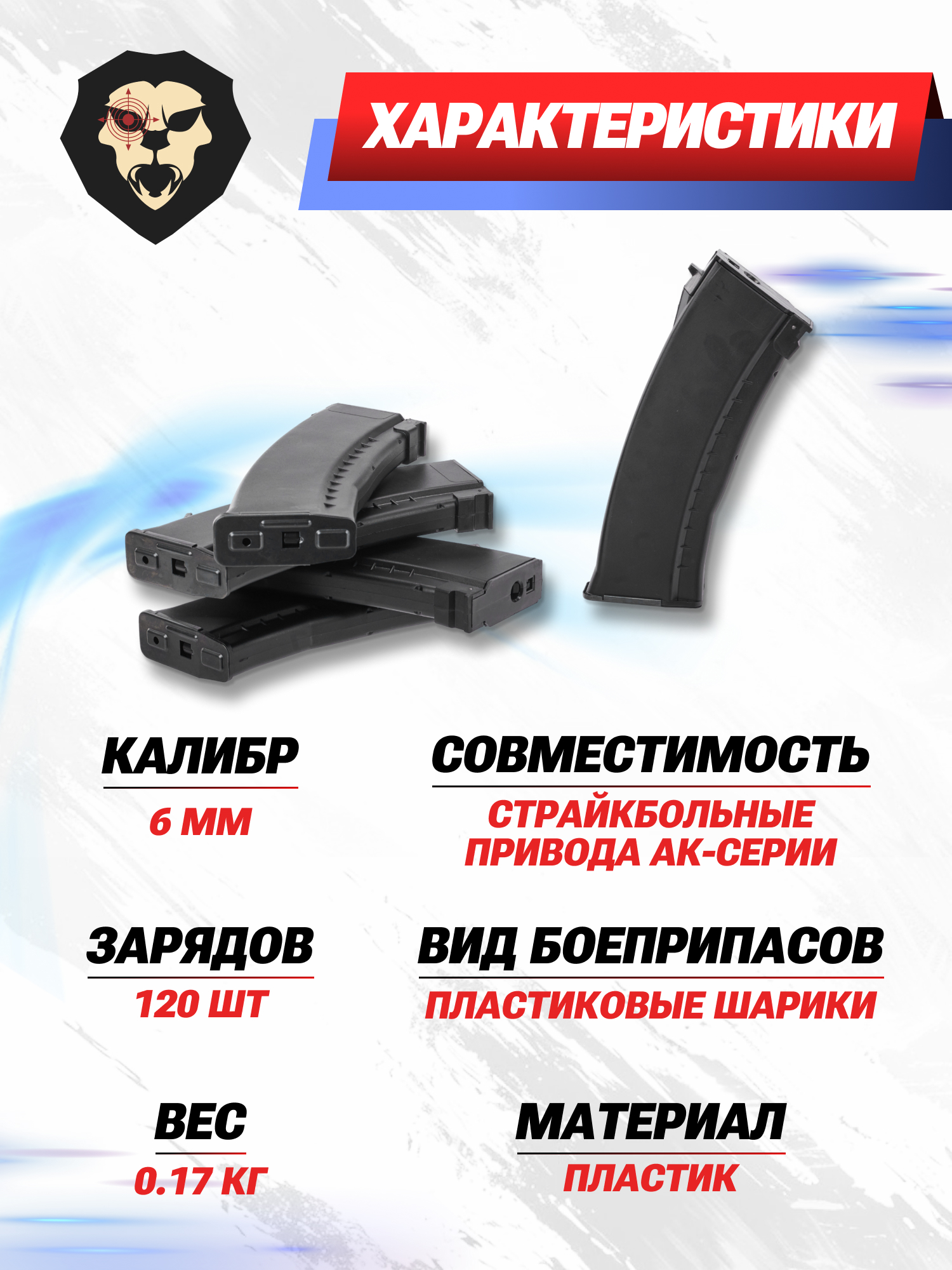 Помимо самого электропневматического эирсофт привода, для участия в страйкбольной игре понадобится запас метаемых шариков. Кроме этого, рекомендуется взять с собой сменные магазины для оперативного перезаряжания оружия. Чтобы упростить подбор подходящих элементов боепитания для автоматов RK-типа, компания E&L выпустила комплект, который включает 5 накопителей.