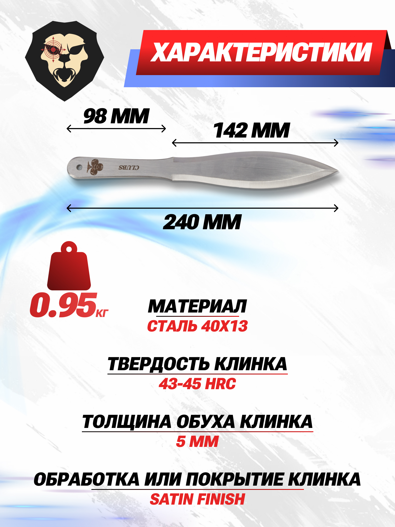 Представленные компанией Ножемир модели обладают симметричным не заточенным клинком вида Spear Point, ввиду чего нож приходит в цель независимо от того, с какой стороны он взят в руку. Тоже справедливо и для хвата - изделия допускают метание как стандартным методом за рукоятку, так и обратным, в котором нож удерживают за клинок. Подойдут ножи для метания для начинающих и опытных пользователей, т.к. вес отдельно взятого предмета равен 172 г - это снизило требования к силе броска.