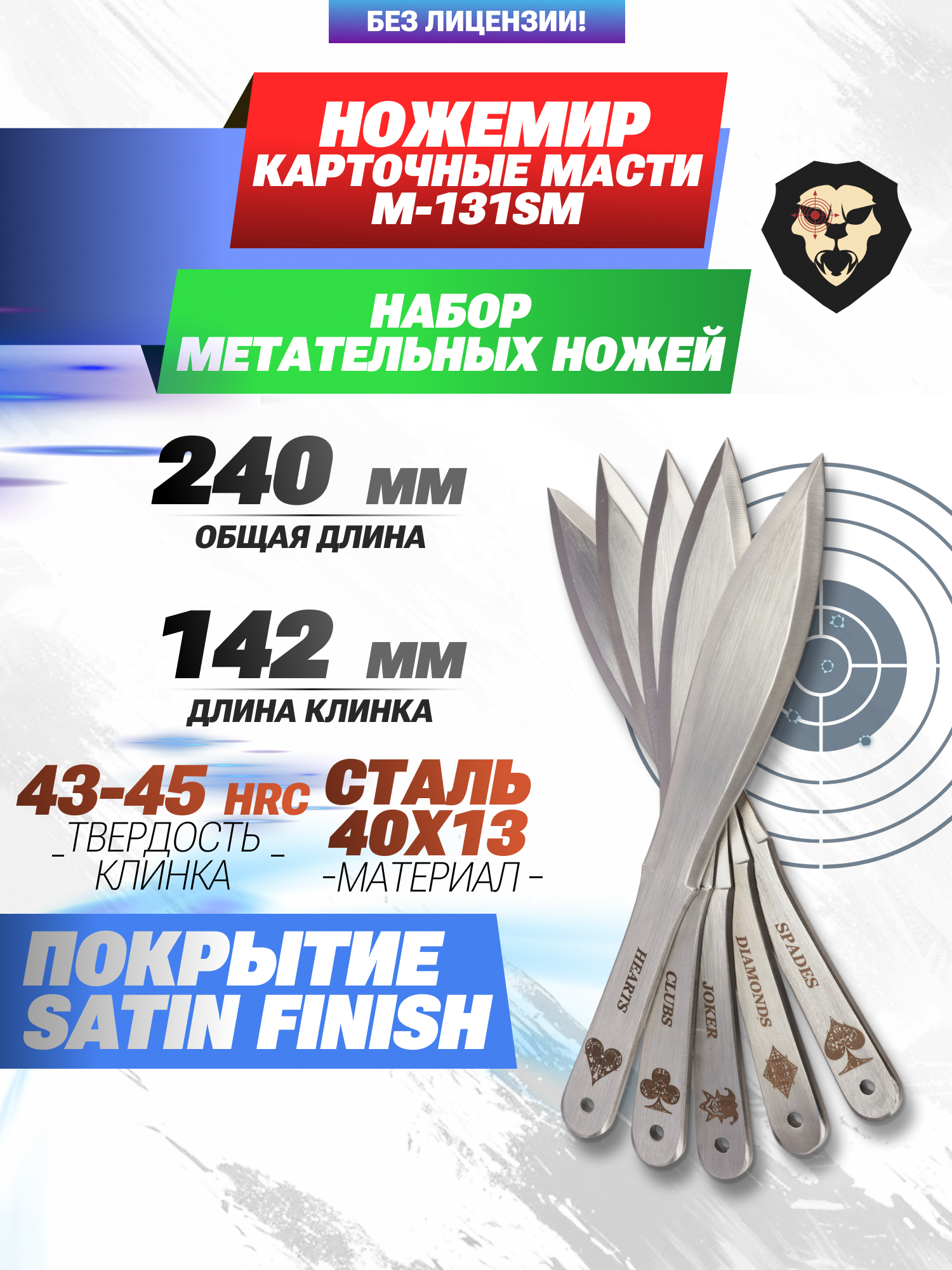 Набор метательных ножей Ножемир Карточные Масти M-131SM (40Х13, 5 шт, чехол-сверток) купить в интернет-магазине Popadiv10.