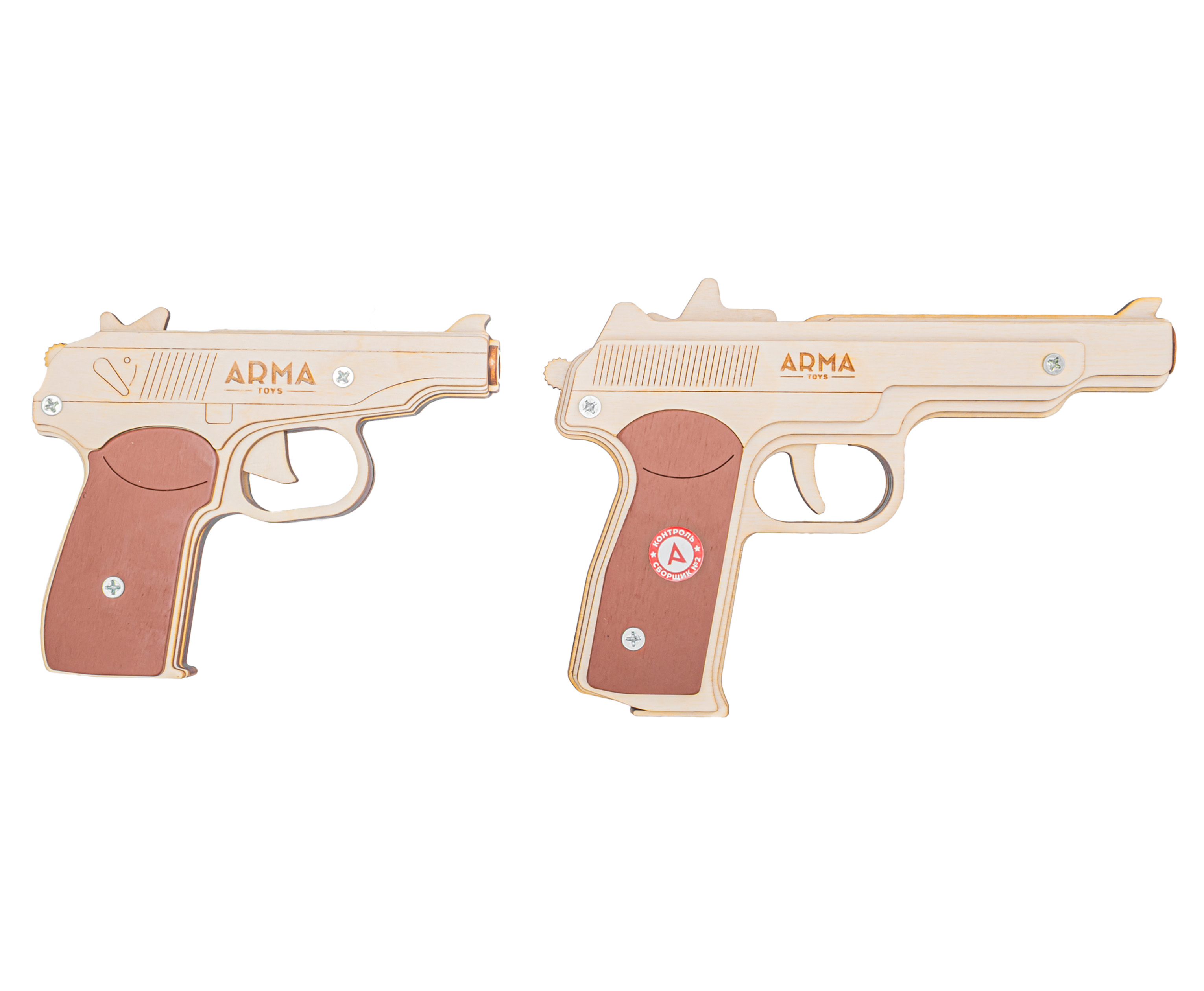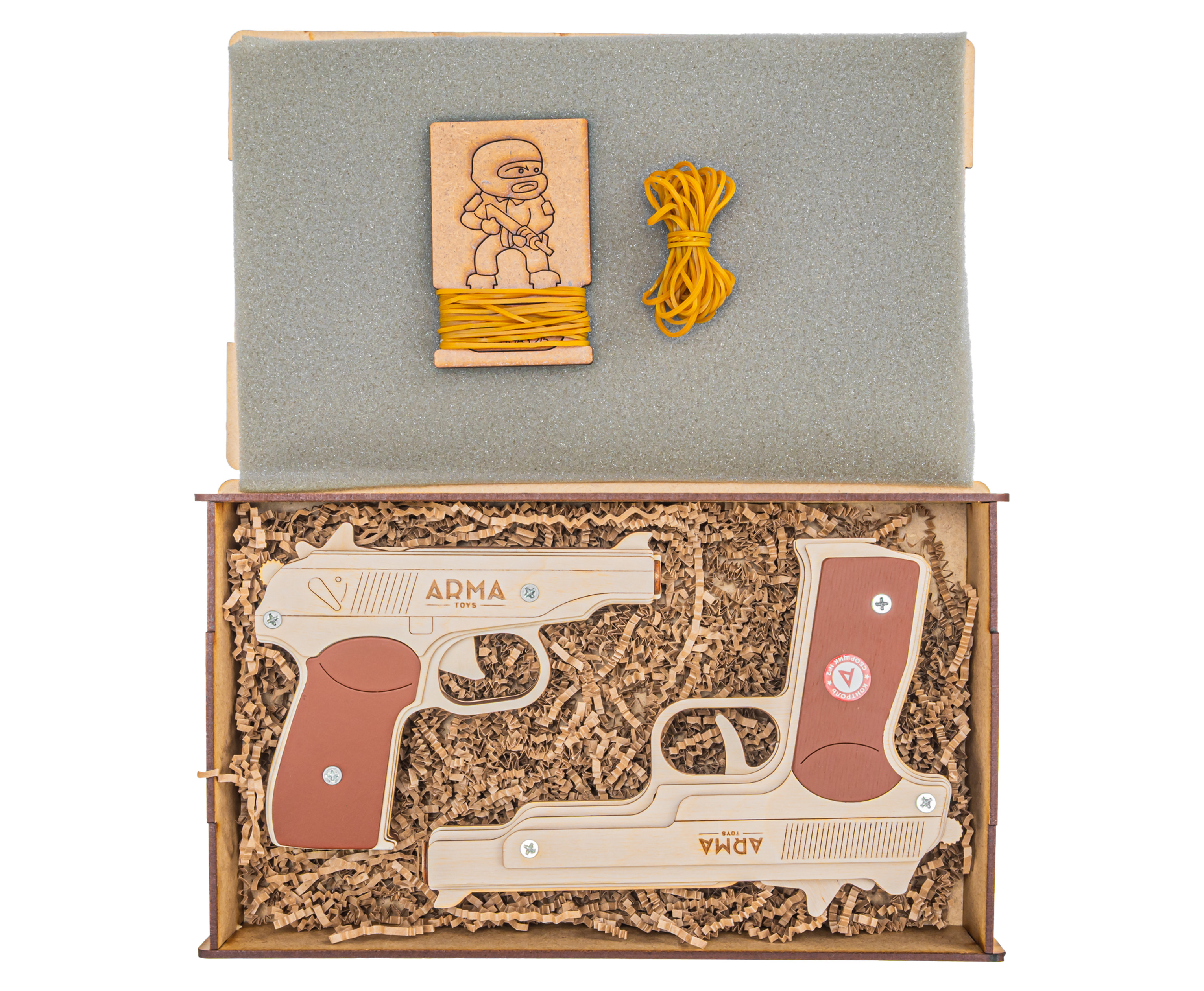 Советская оружейная промышленность второй половины двадцатого века считалась передовой на тот период, а многие образцы до сих пор являются гарантом качества и применяются как в войсках, так и на гражданском рынке. Для ознакомления подрастающего поколения с отечественными моделями винтовок и пистолетов мастерская Arma подготовила тематические наборы деревянных макетов, детально воспроизводящих внешнее строение боевых прототипов.