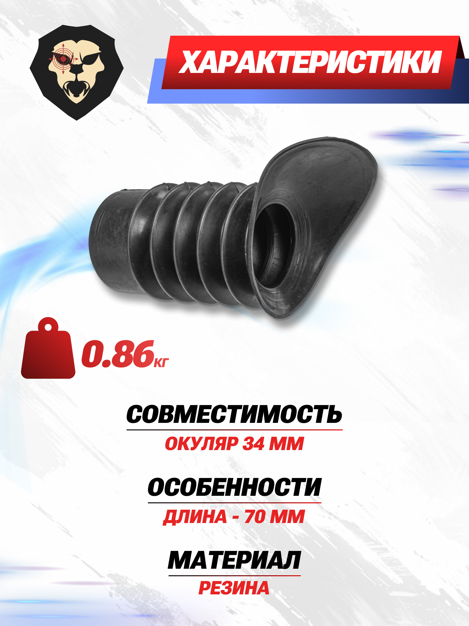 Наглазник на прицел Patriot изготовили из мягкой резины - благодаря этому материал не ломается при контакте и не трескается на морозе. Для установки детали не требуется крепеж - резинка держится под собственным натяжением. Также не придется беспокоиться о весе конечной конструкции – козырек имеет массу 20 грамм.