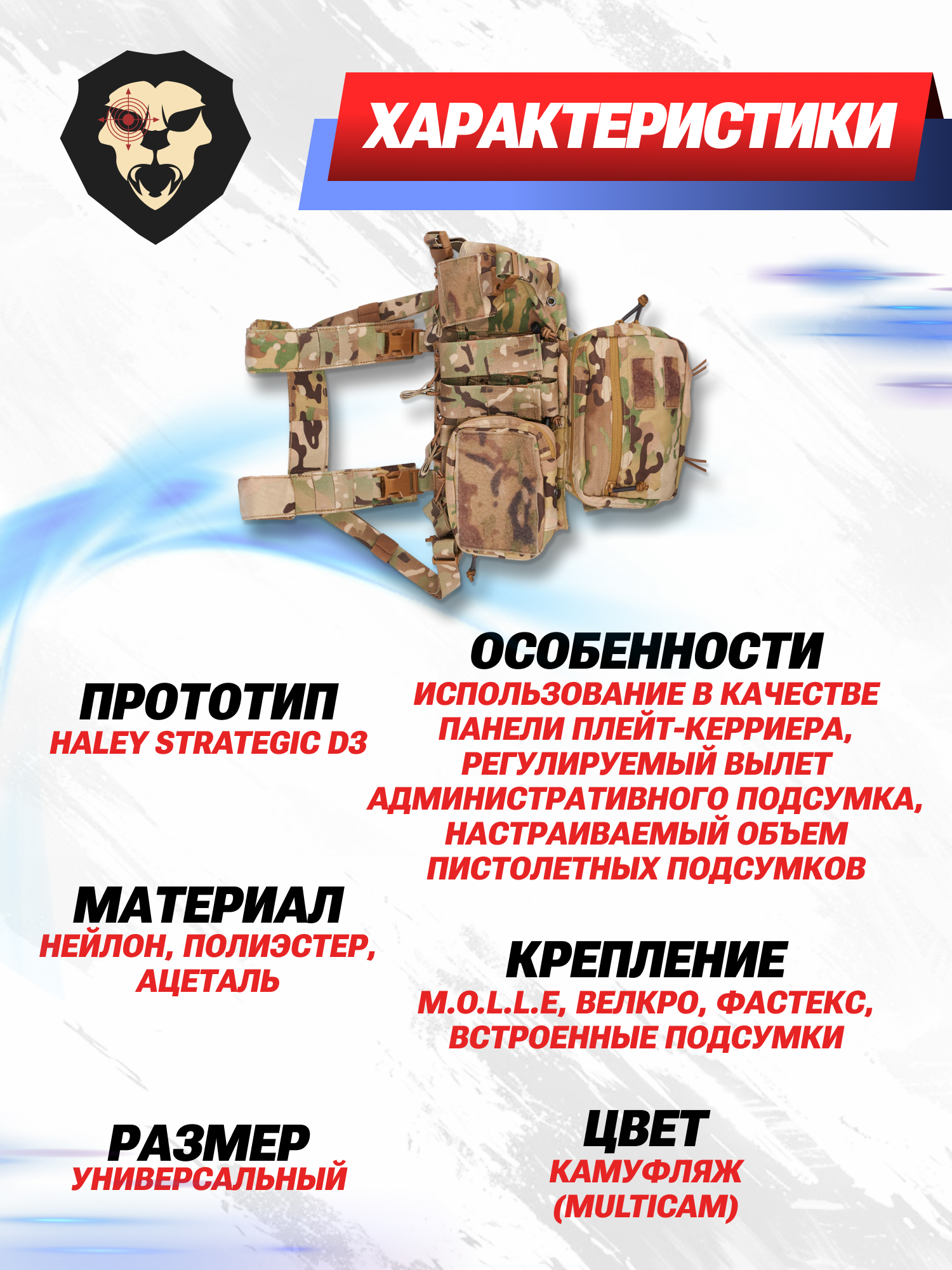 | Особенности | Использование в качестве панели плейт-керриера, регулируемый вылет административного подсумка, настраиваемый объем пистолетных подсумков |