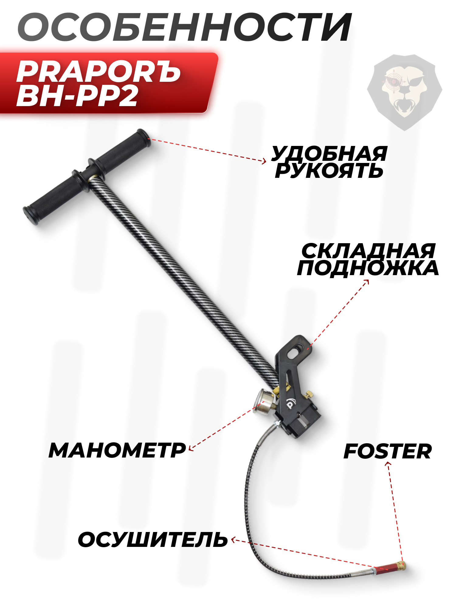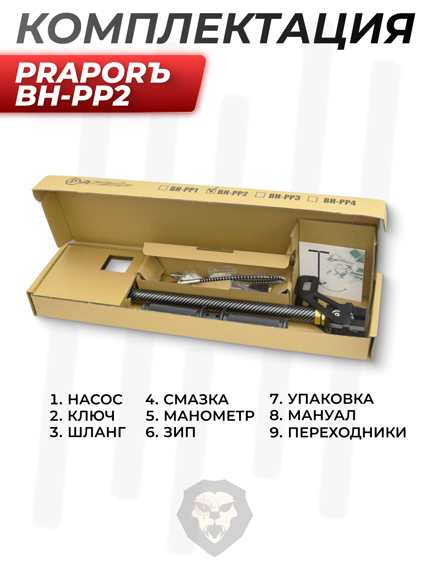 Рассматриваемый образец модели PP2 подойдет для заправки как пневматических винтовок, так и пистолетов PCP типа. Насос Прапоръ оснащается армированным высокопрочным шлангом, который вкручивается в корпус посредством резьбы G1/8. Для подсоединения к порту закачки ресивера предусмотрен разъем Foster под соответствующие быстросъемные штуцеры.