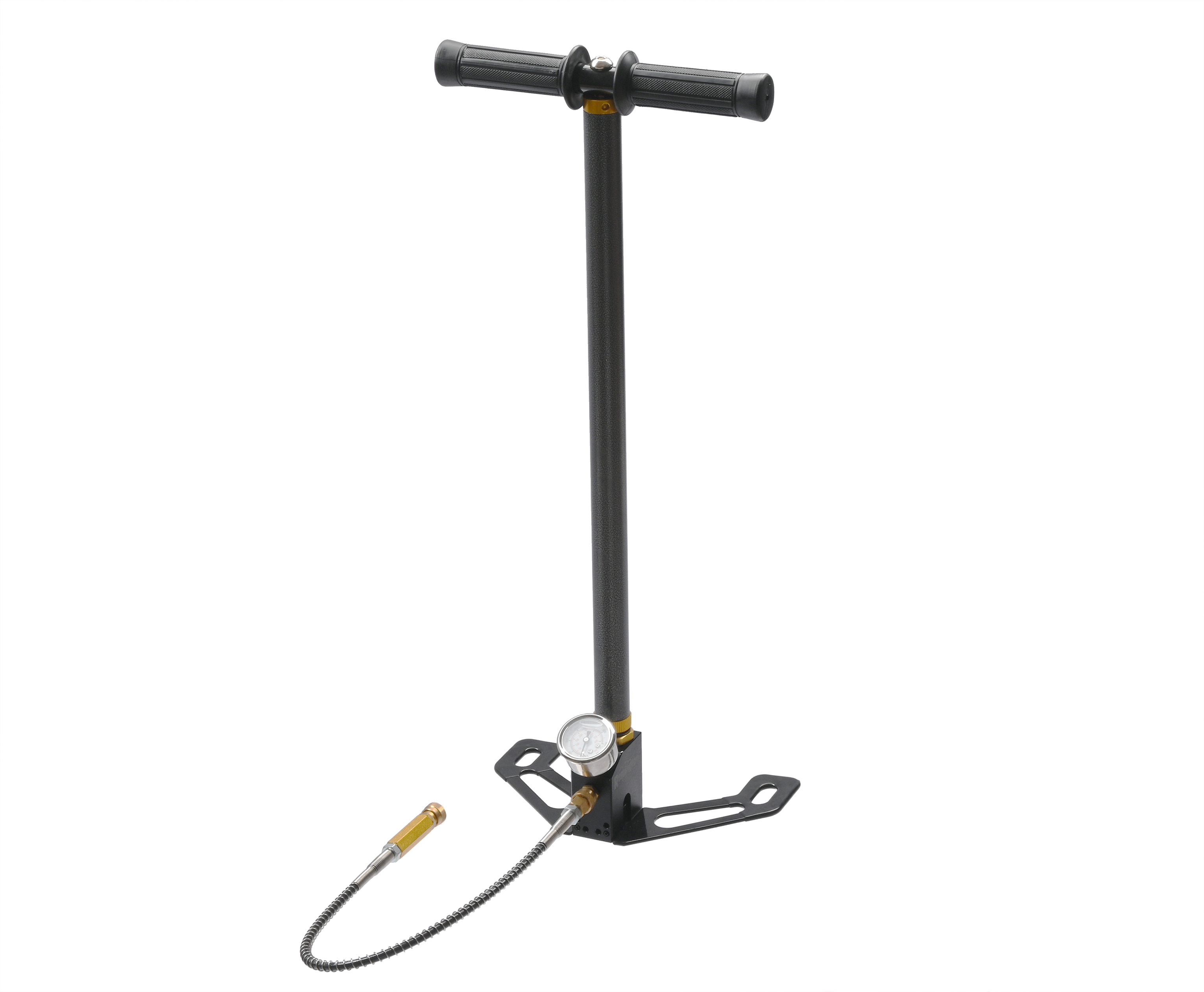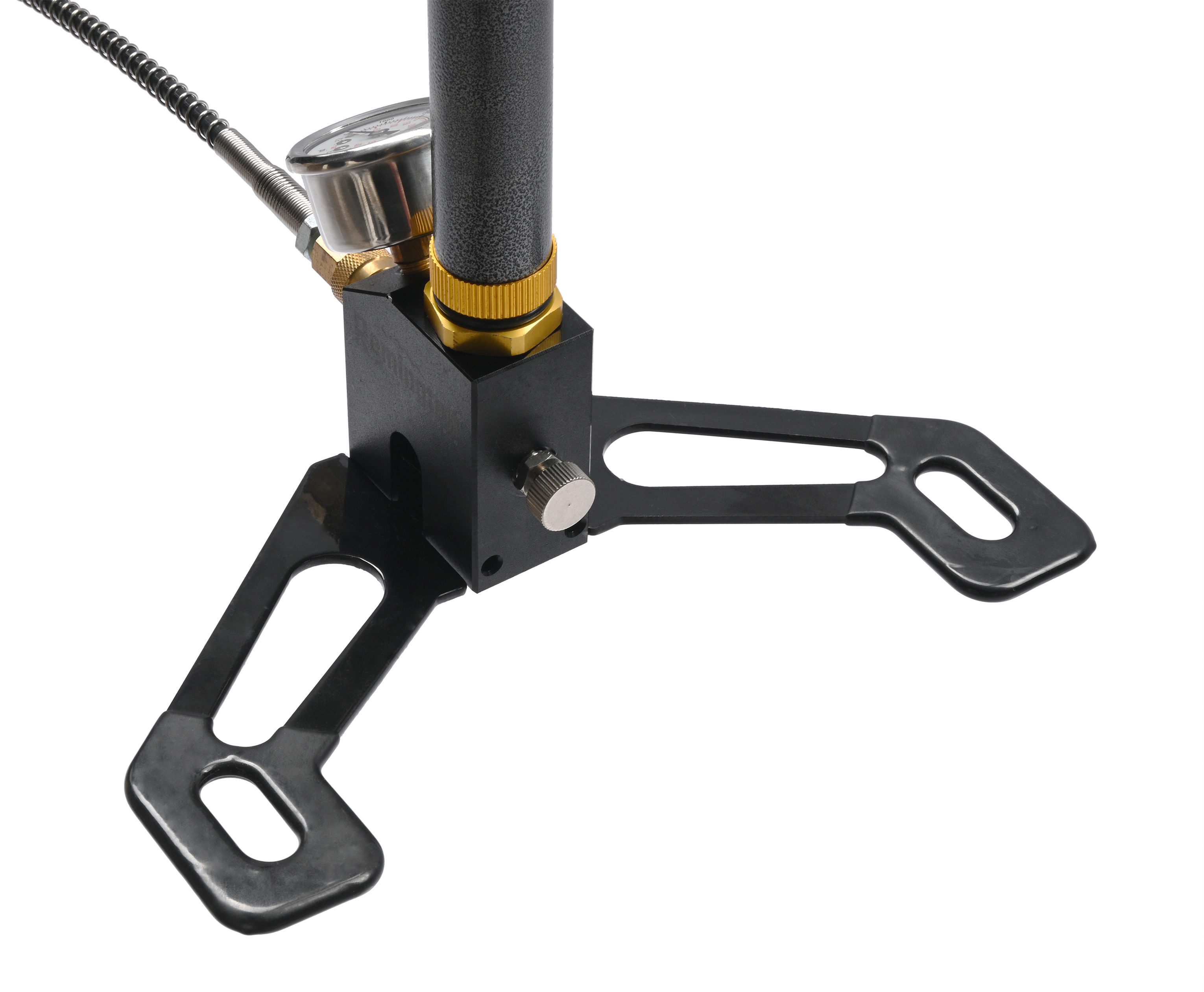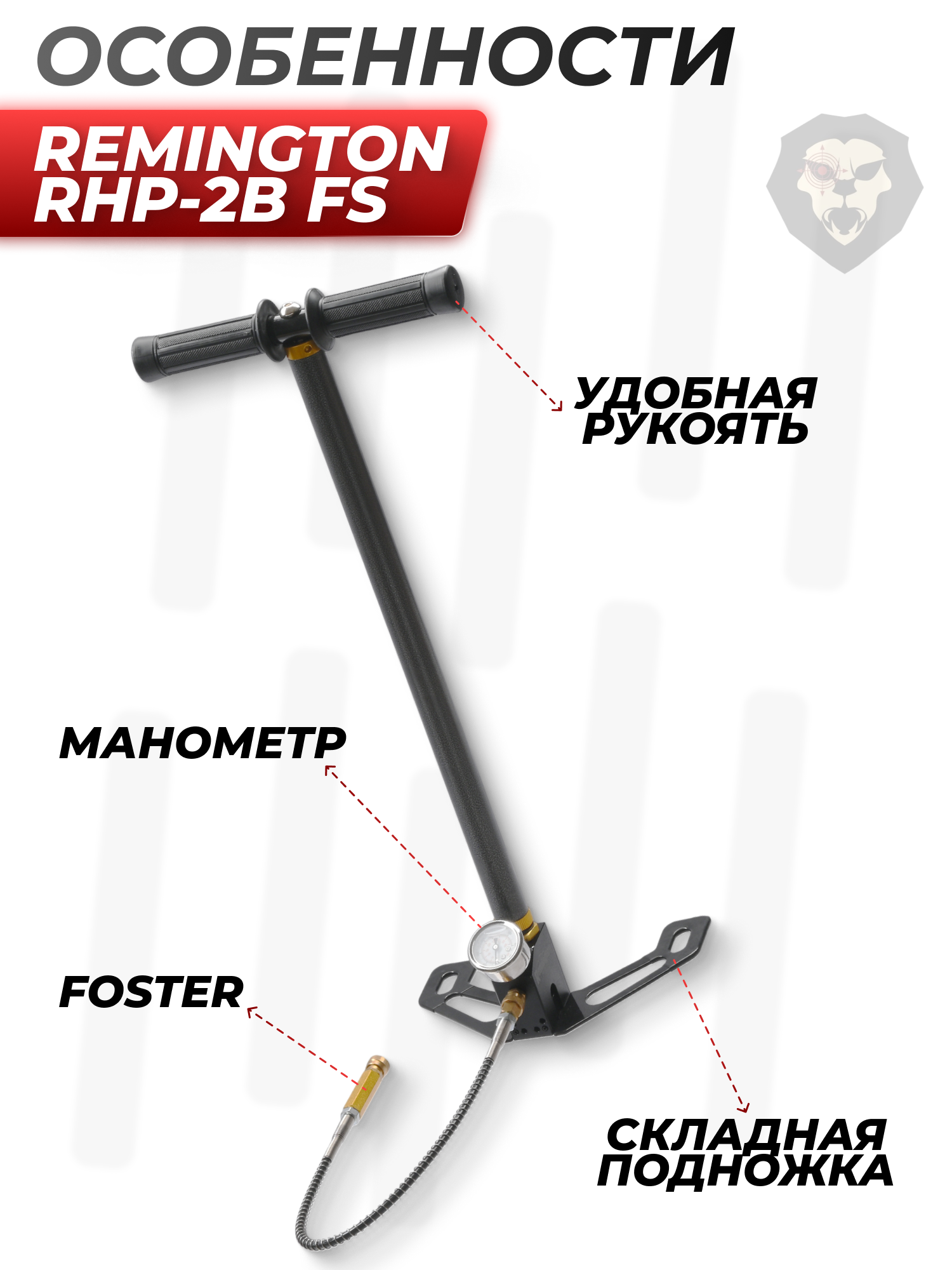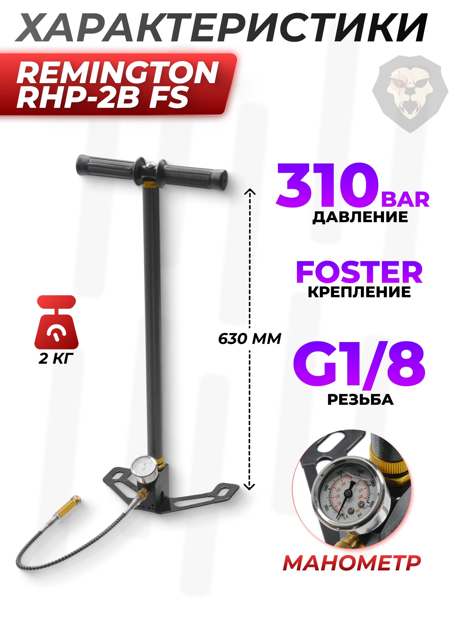 Насос ВД для РСР пневматики от фирмы Remington рассчитан на максимальное давление 310 Бар. Перед работой его необходимо выставить вертикально - устойчивое положение принимается посредством опоры. Складные подпружиненные ножки в транспортировочном положении поджимаются к трубе, что избавляет от потребности в их демонтаже.