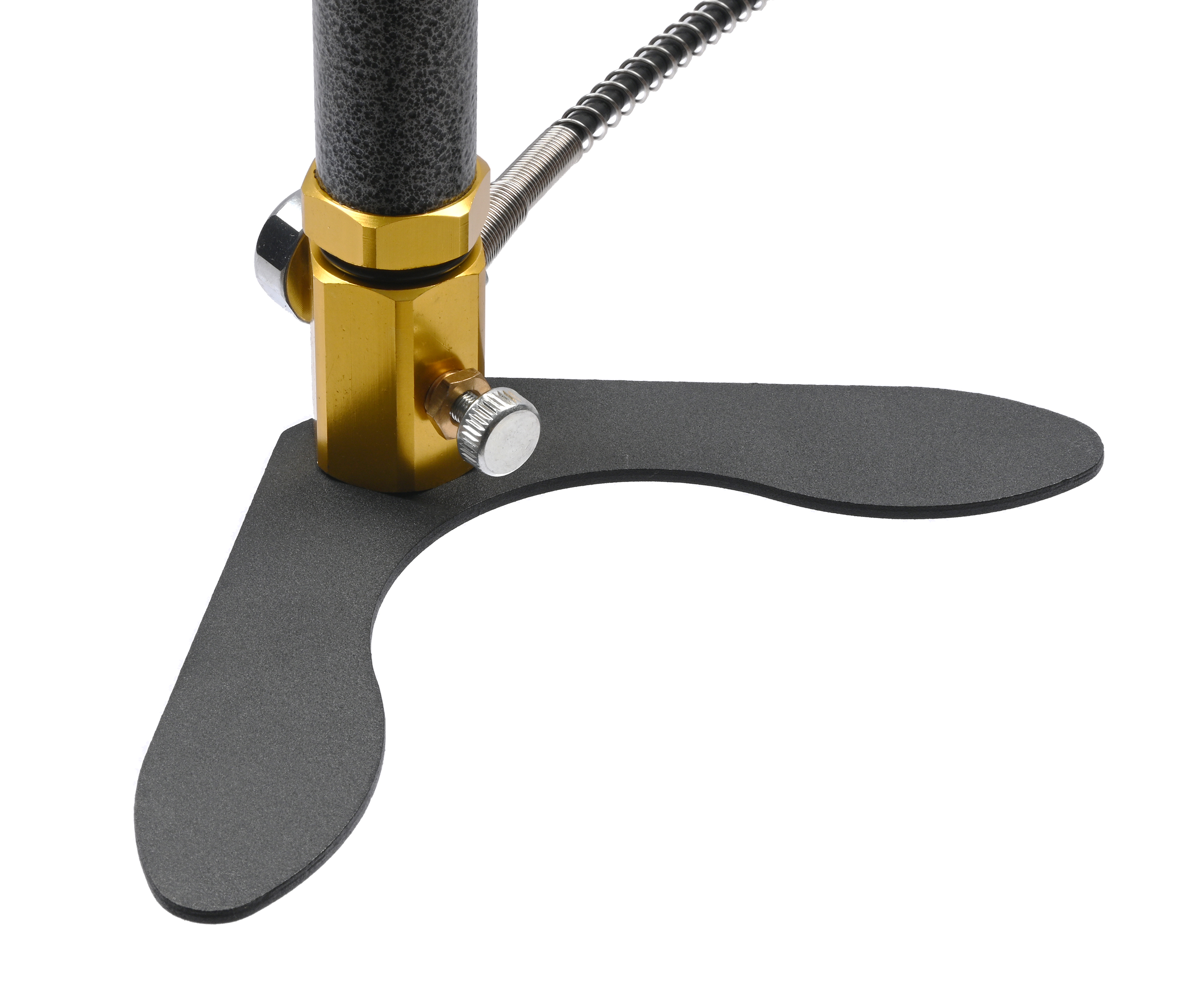 Внизу присутствует подножка, за счет которой изделие стабильно удерживается во время накачки. В свою очередь обрезиненная рукоять с рельефными насечками не допустит соскальзывания ладоней. Указанные элементы конструкции фиксируются винтами под комплектный ключ - предрасположенность к разборке упрощает транспортировку и хранение.