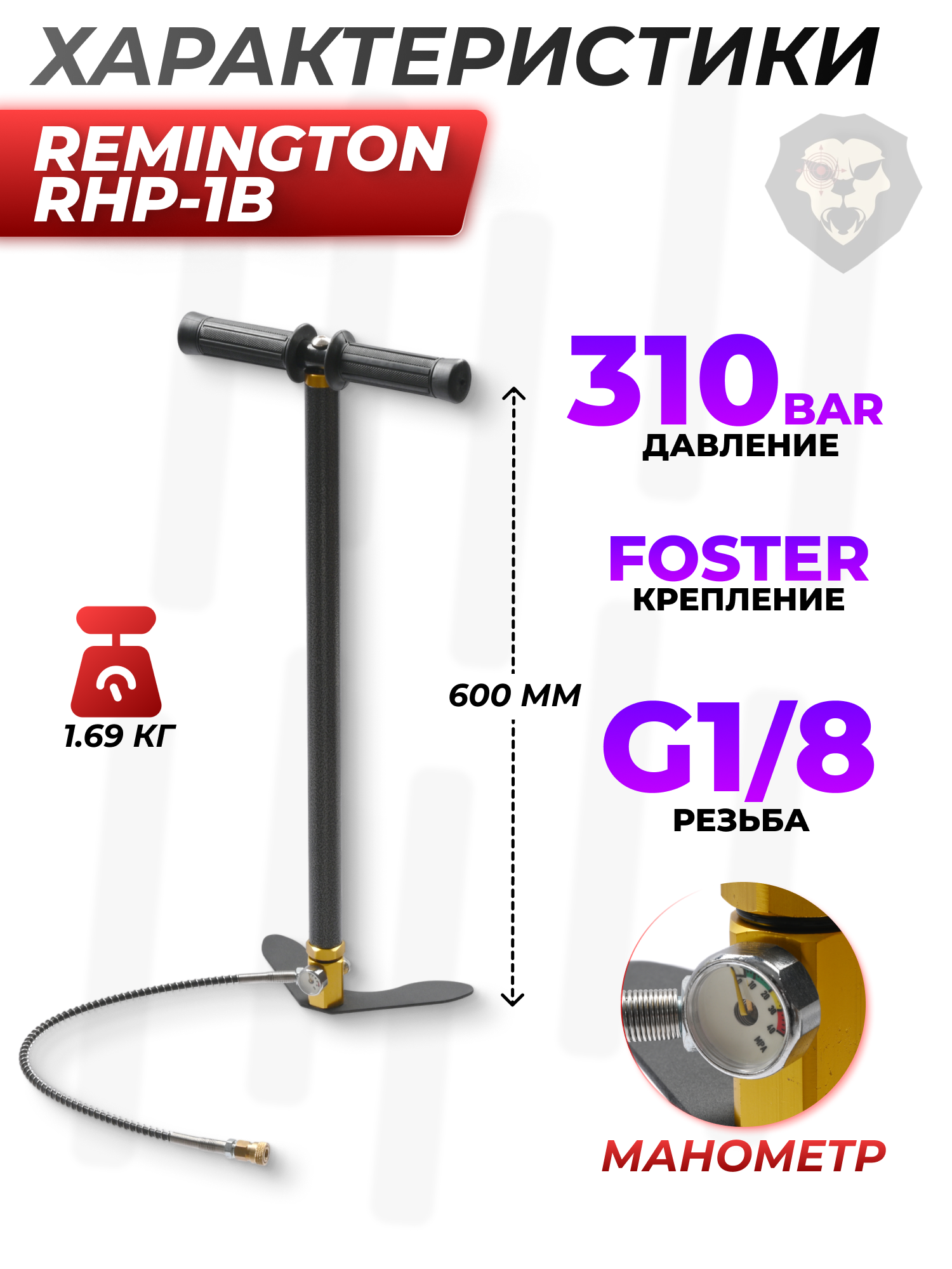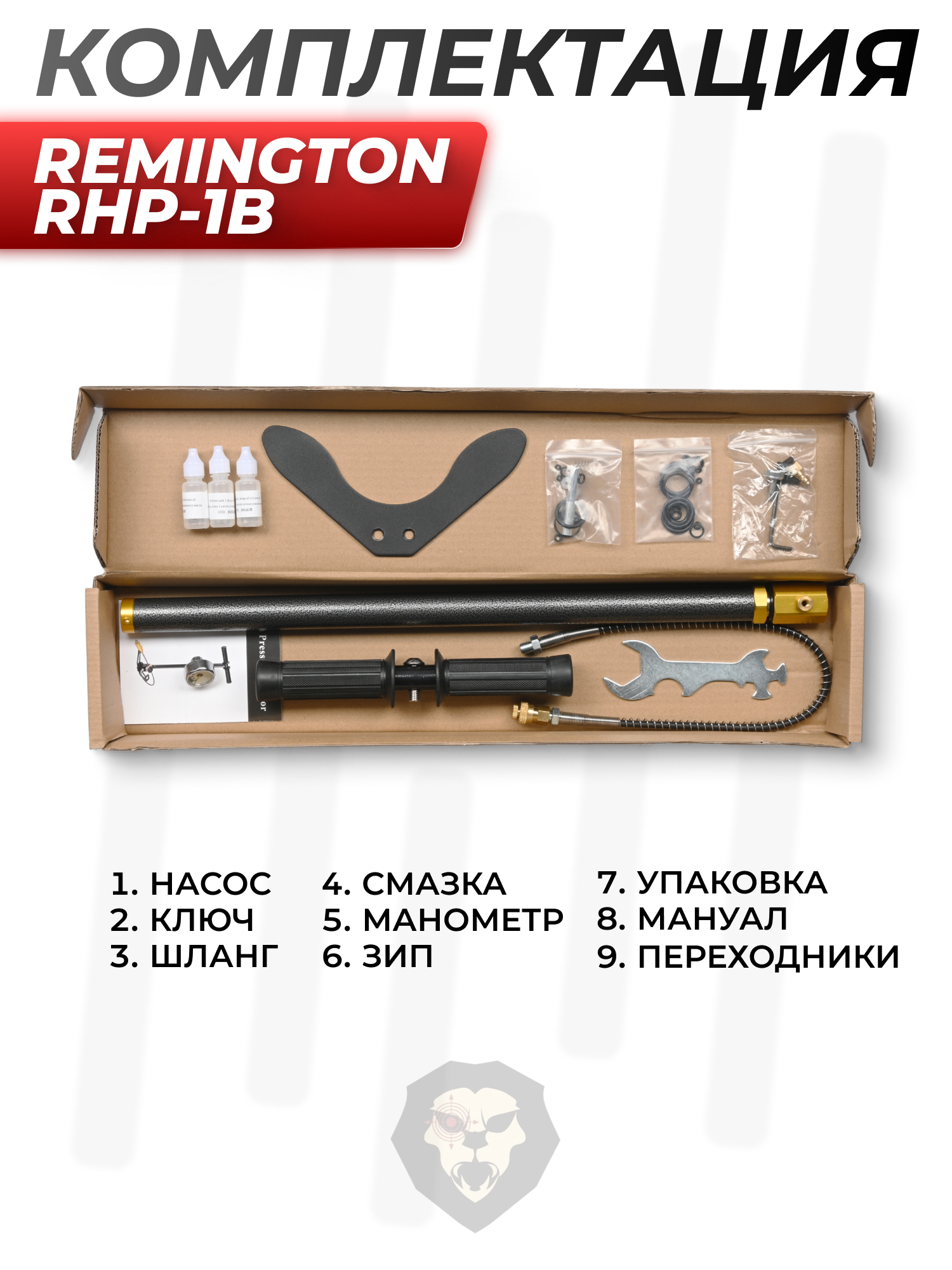 Компания Remington занимается изготовлением различного оснащения для стрелков. Товарный ряд примечателен наличием линейки аксессуаров для пневматики. Так для заправки воздухом ПСП винтовок и пистолетов выпускаются специальные ручные насосы высокого давления.