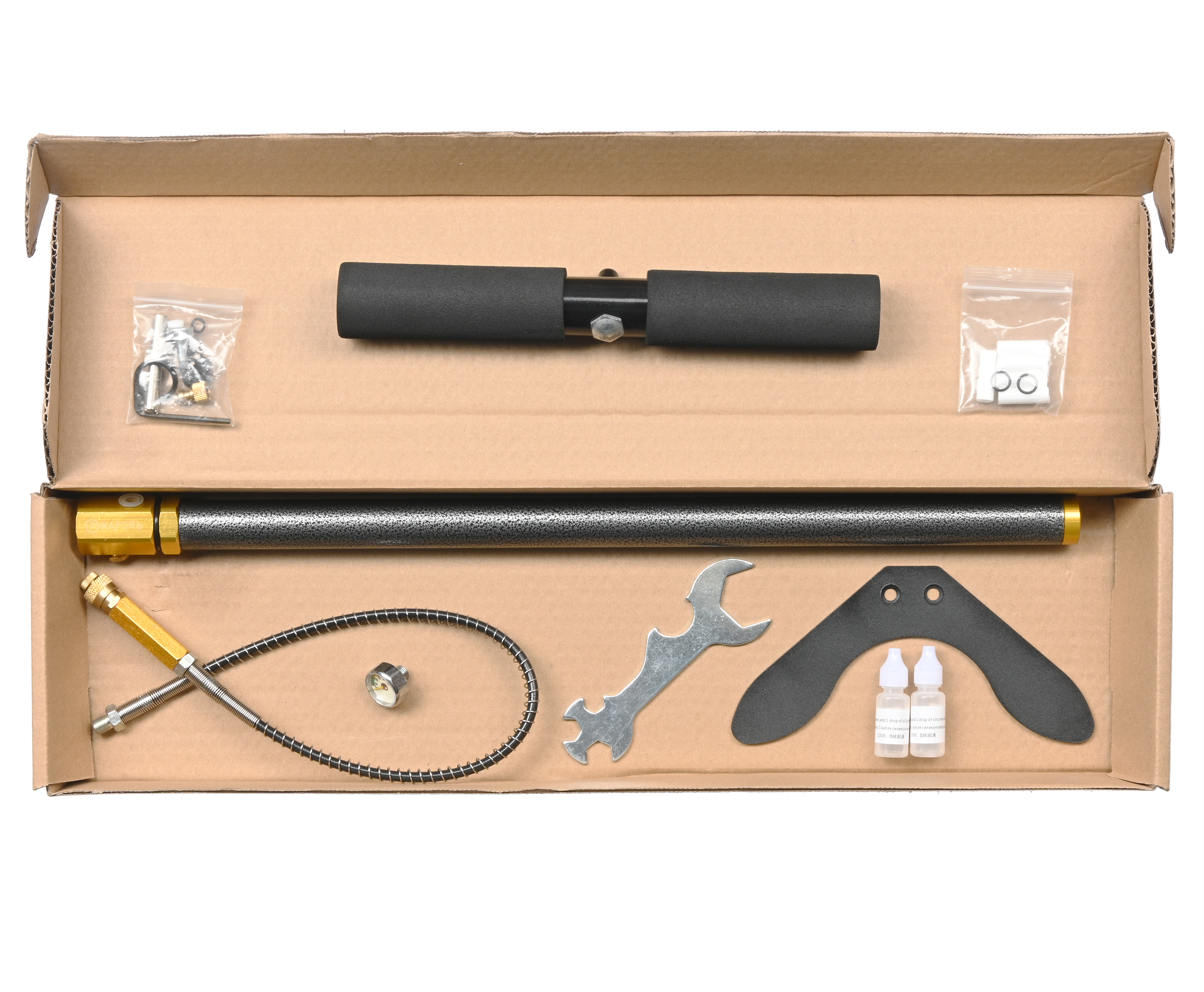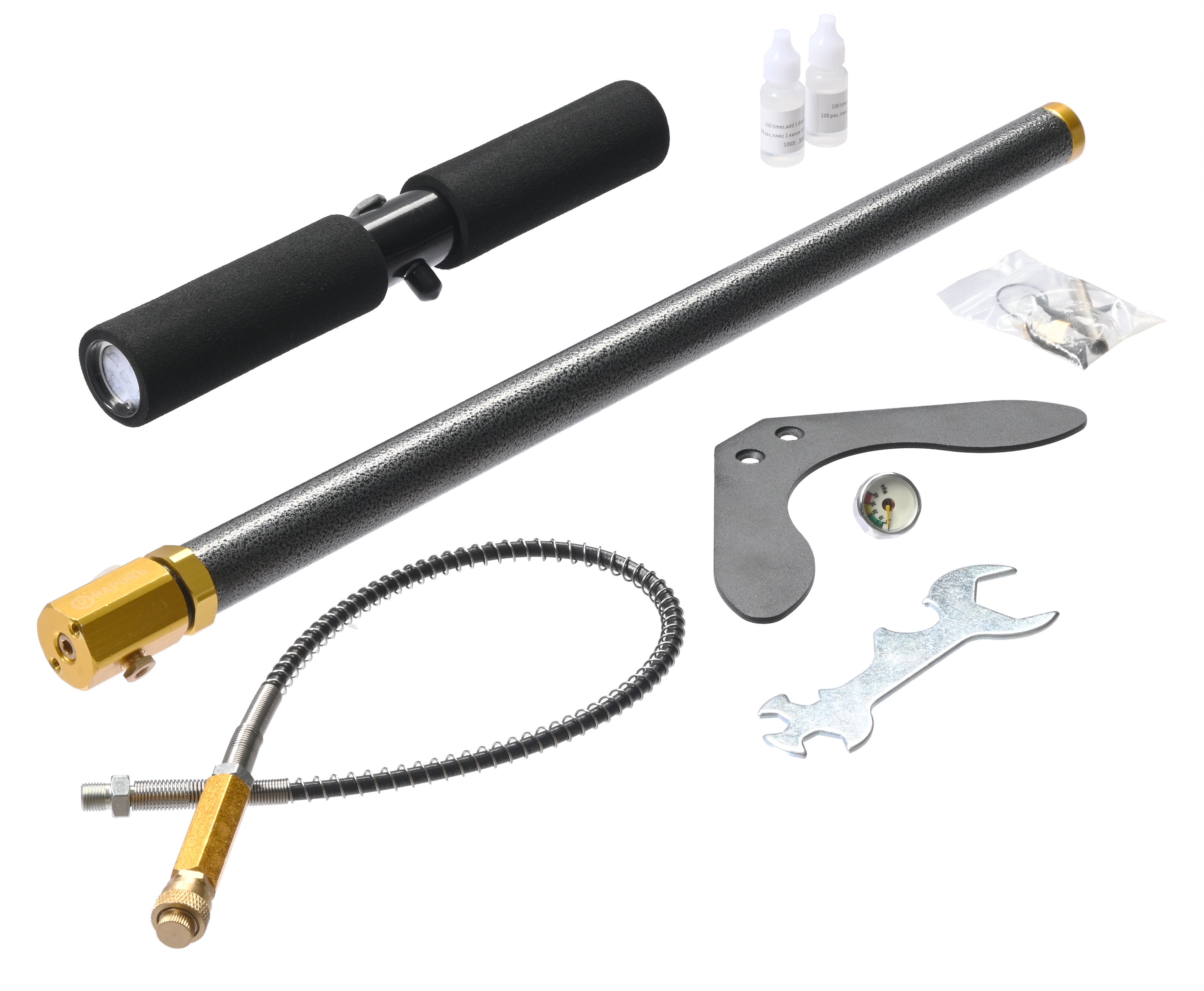 В отсутствии осушителя применяют ручную продувку от возможного конденсата. Для этого потребуется выполнить от пяти до десяти качков в холостую. Насос для РСР снабдили шлангом с фостер-коннектором, который крепится к устройству через соединение G1/8.