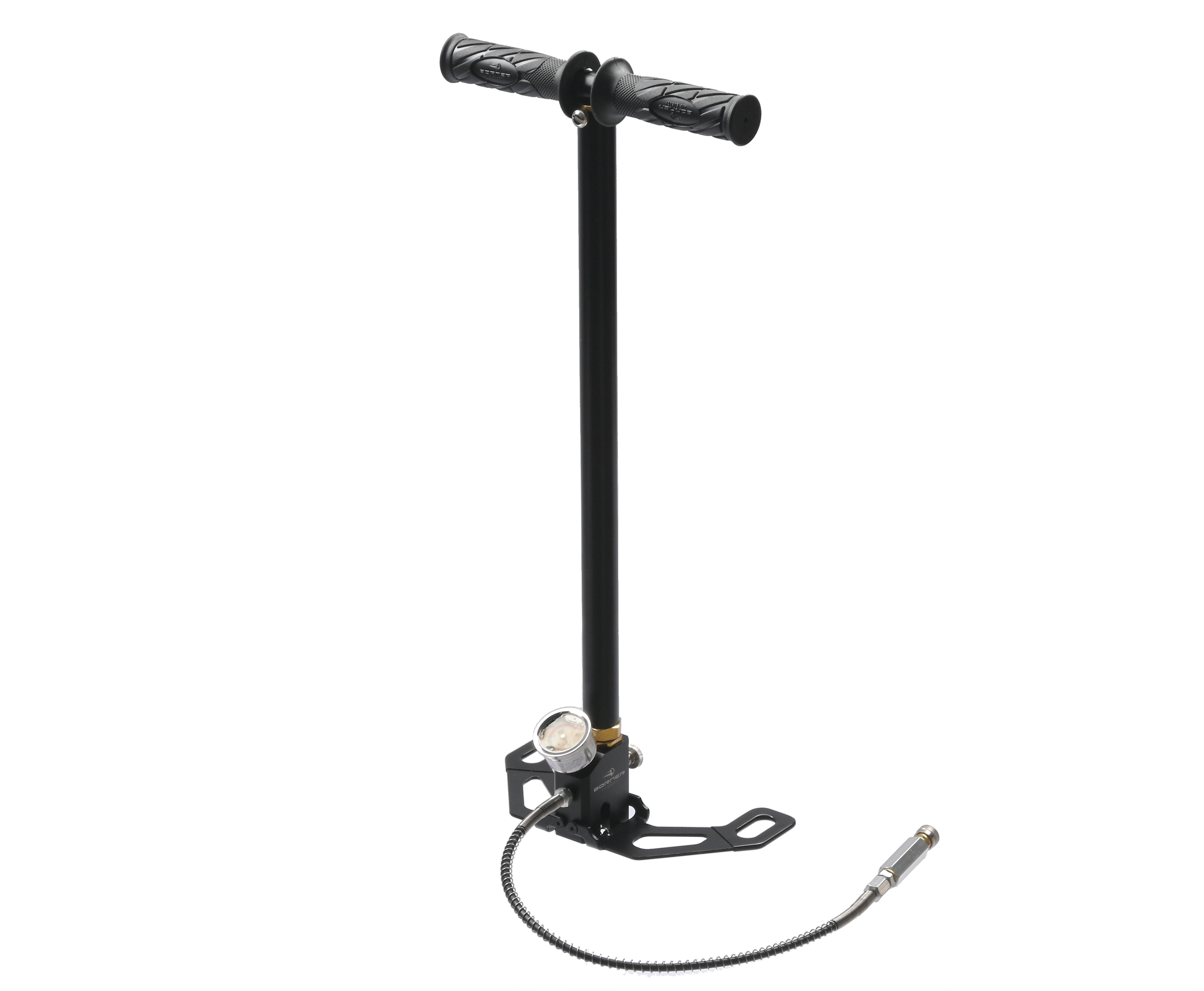 Рассматриваемый образец необходим для заполнения ресиверов ПЦП пневматики сжатым воздухом - насос рассчитывается на предельное давление до 310 Бар, при этом для контроля последнего предусмотрен манометр. Требуется отметить, что изделие не требует больших усилий во время закачки за счет продуманной конструкции.