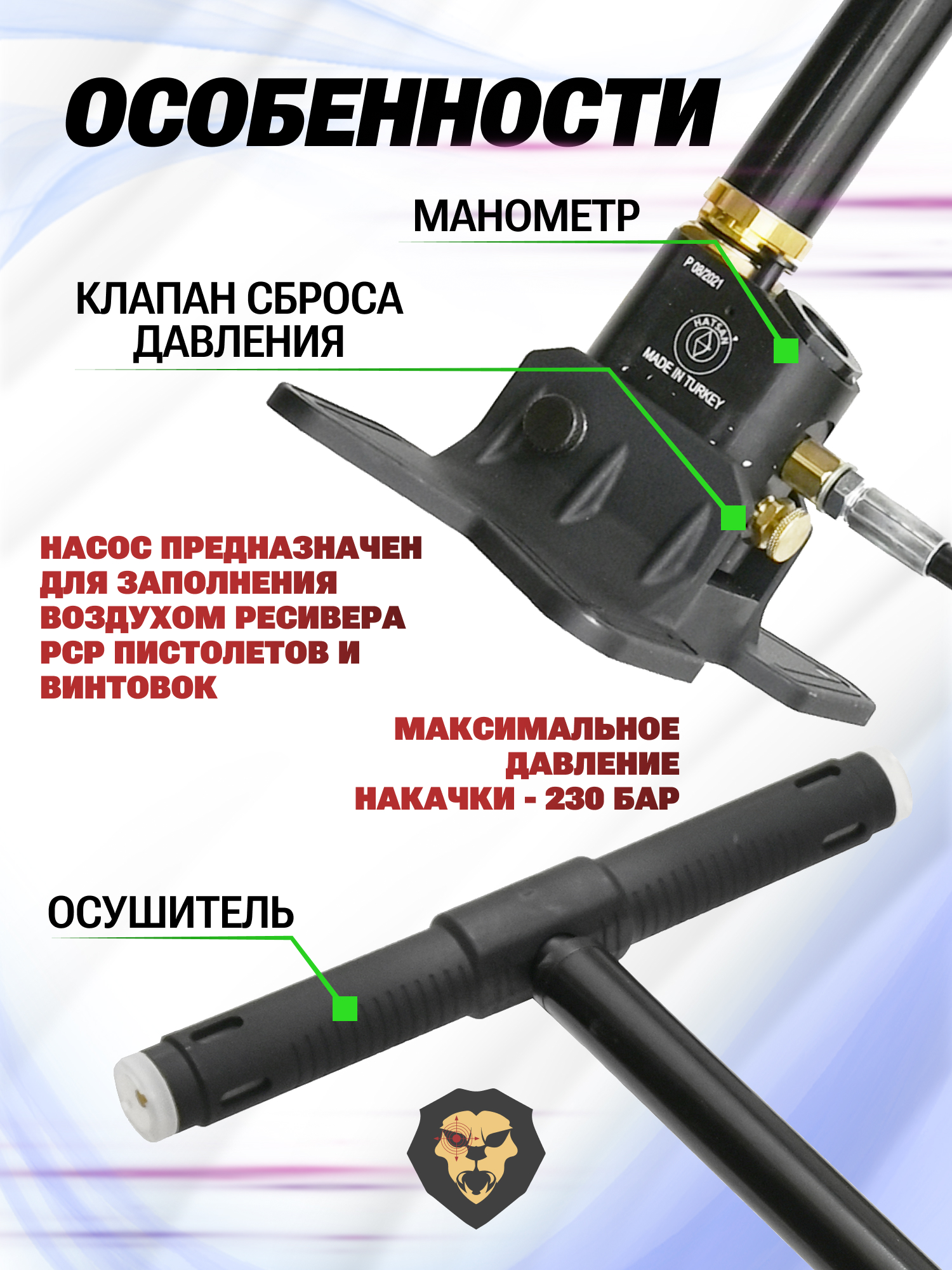Информация о товаре "Насос высокого давления Hatsan (230 Бар, манометр, осушитель)" носит ознакомительный характер, и не является публичной офертой, определяемой положениями Статьи 437 Гражданского кодекса Российской Федерации, характеристики, внешний вид, цвет и комплектация могут быть изменены производителем без уведомления.