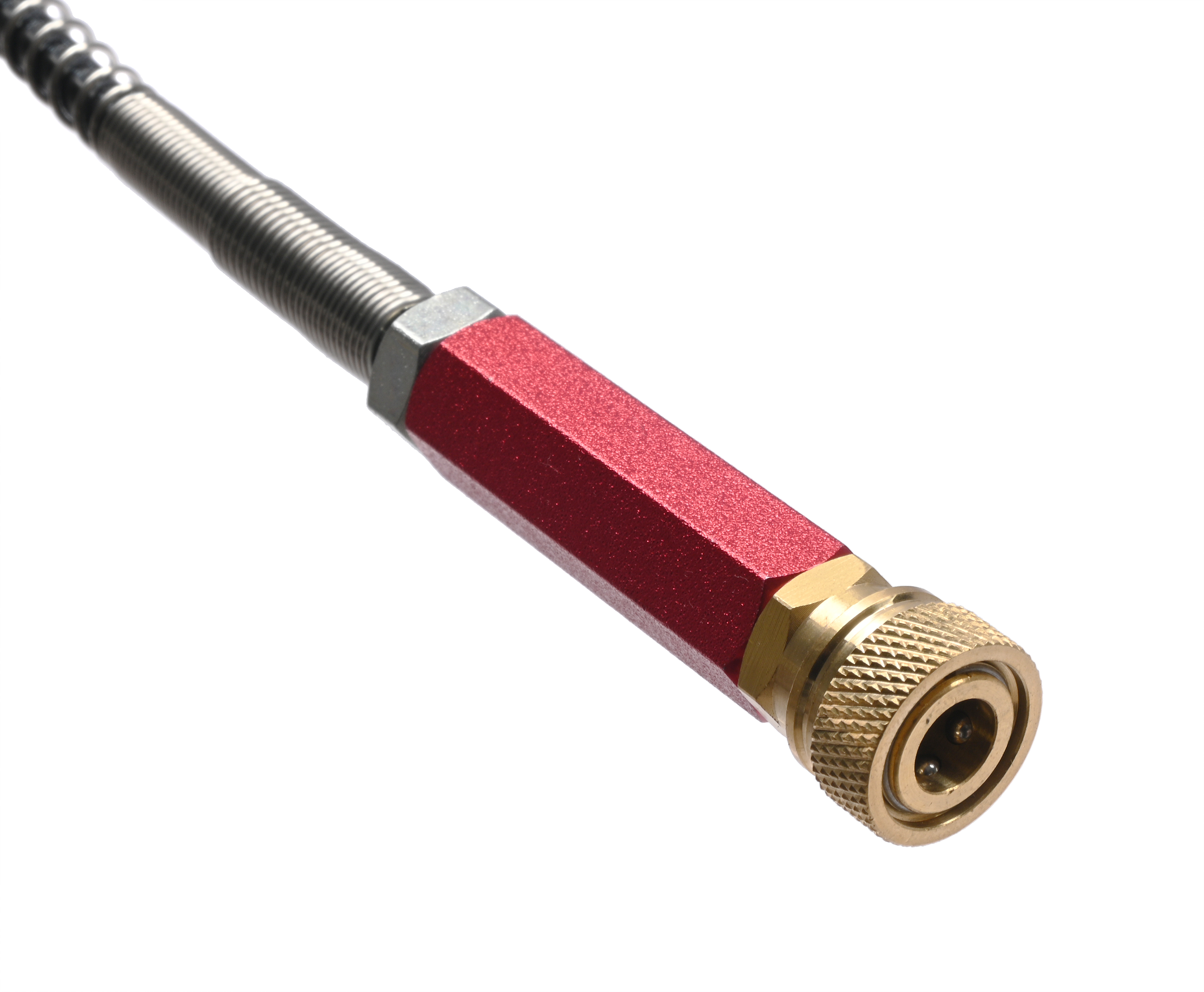 Комплектация включает шланг, обвитый пружиной и рассчитанный на многократное использование - для подключения применяется распространенный разъем «мама» G1/8. Встроенный манометр допускает отслеживание давления, а осушитель предотвращает попадание частиц, защищая узлы пневматики от загрязнения.