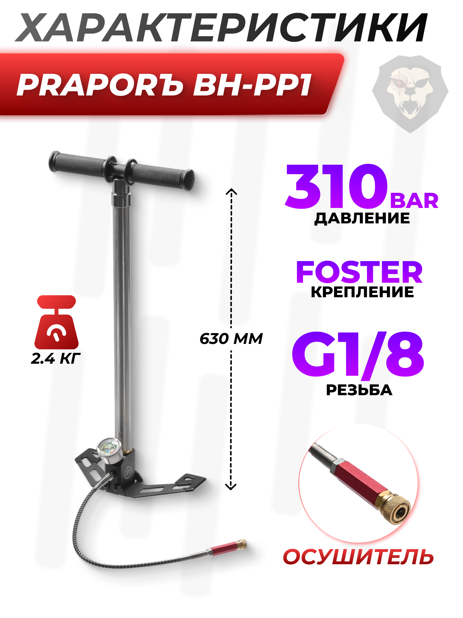 Информация о товаре "Насос высокого давления Praporъ BH-PP1 (310 Бар, манометр, осушитель)" носит ознакомительный характер, и не является публичной офертой, определяемой положениями Статьи 437 Гражданского кодекса Российской Федерации, характеристики, внешний вид, цвет и комплектация могут быть изменены производителем без уведомления.
