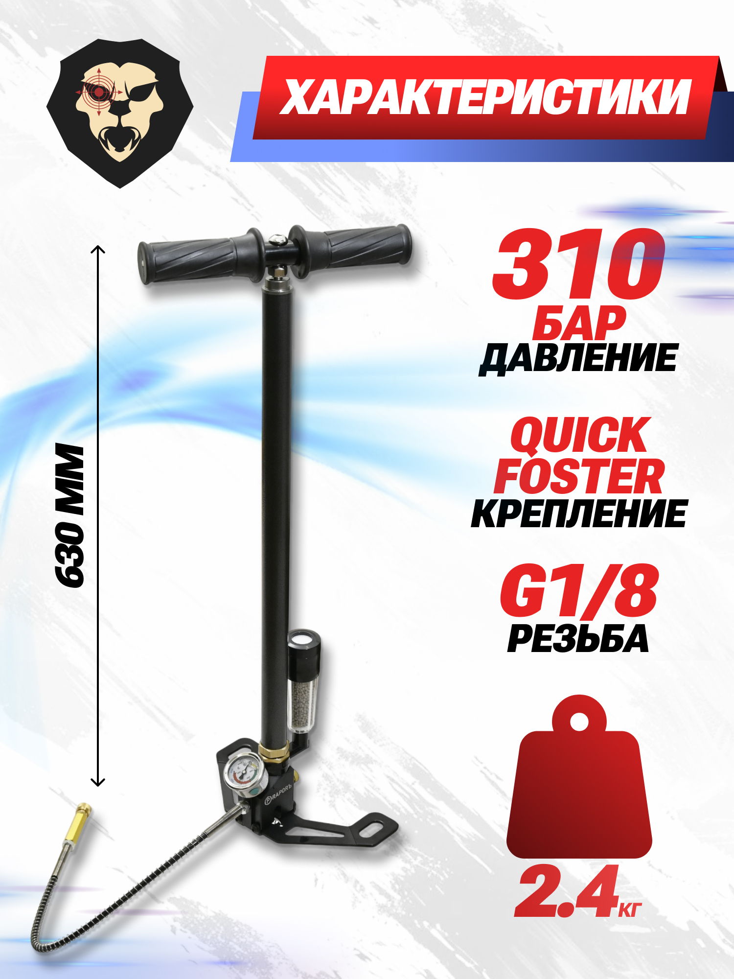 Обозреваемая модель BH-PPD подойдет для заполнения пневматических винтовок и пистолетов PCP типа как с ресиверами стандартного вида, так и резервуарами в виде колбы. Трехступенчатый насос ВД Prapor рассчитан на максимальное давление 310 Бар, при этом не требует больших усилий при накачке благодаря продуманной конструкции.