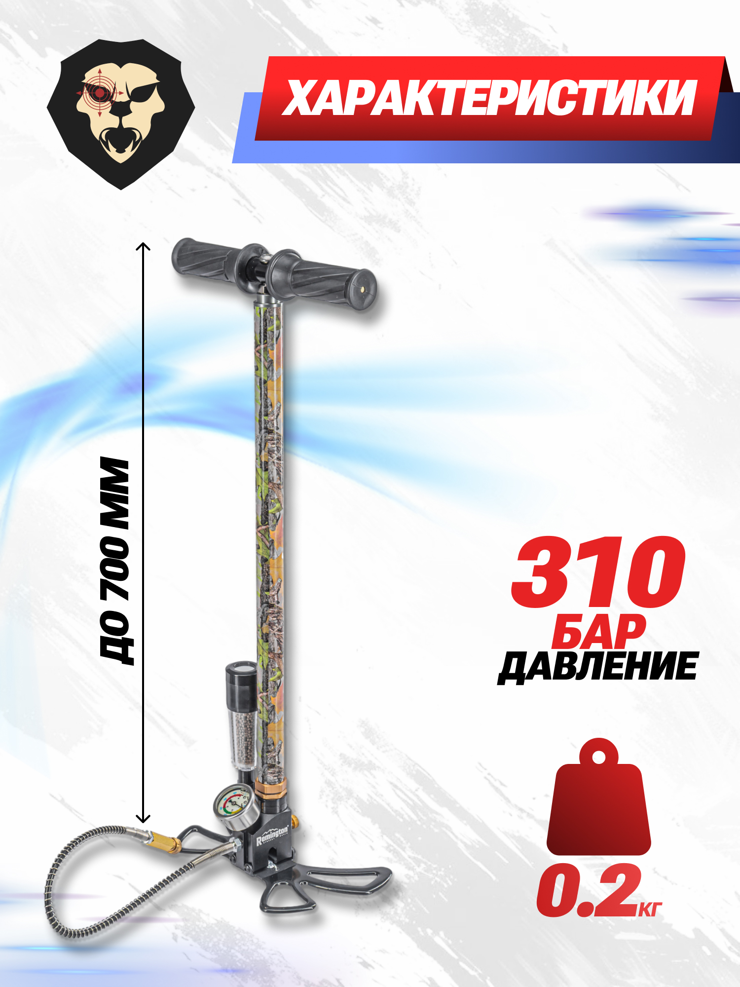Насос для PCP винтовки Ремингтон обладает достаточной производительностью для заправки стрелковых единиц как с линейным, так и колбовым ресивером увеличенной вместимости. Заявленное максимальное давление накачки составляет 310 Бар. Степень заполнения можно оперативно контролировать встроенным манометром.